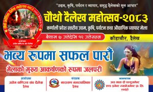 दैलेख: उघोग बाणिज्य संघ दैलेखले कर्णाली प्रदेश स्तरिय उघम,कृर्षि,पर्यटन तथा औघोगिक व्यापार मेला गर्ने भएको छ । आईतबार दैलेखी सेवा समाज,काठमाडौको त्रिपुरेश्वर स्थित कार्यालयमा आयोजित चौथो दैलेख महोत्सव सम्बन्धि कार्यक्रम सार्वजनिक गर्ने कार्यक्रम अन्तर्गत गरियको पत्रकार सम्मेलनमा दैलेख उघोग बाणिज्य… विस्तृतमा