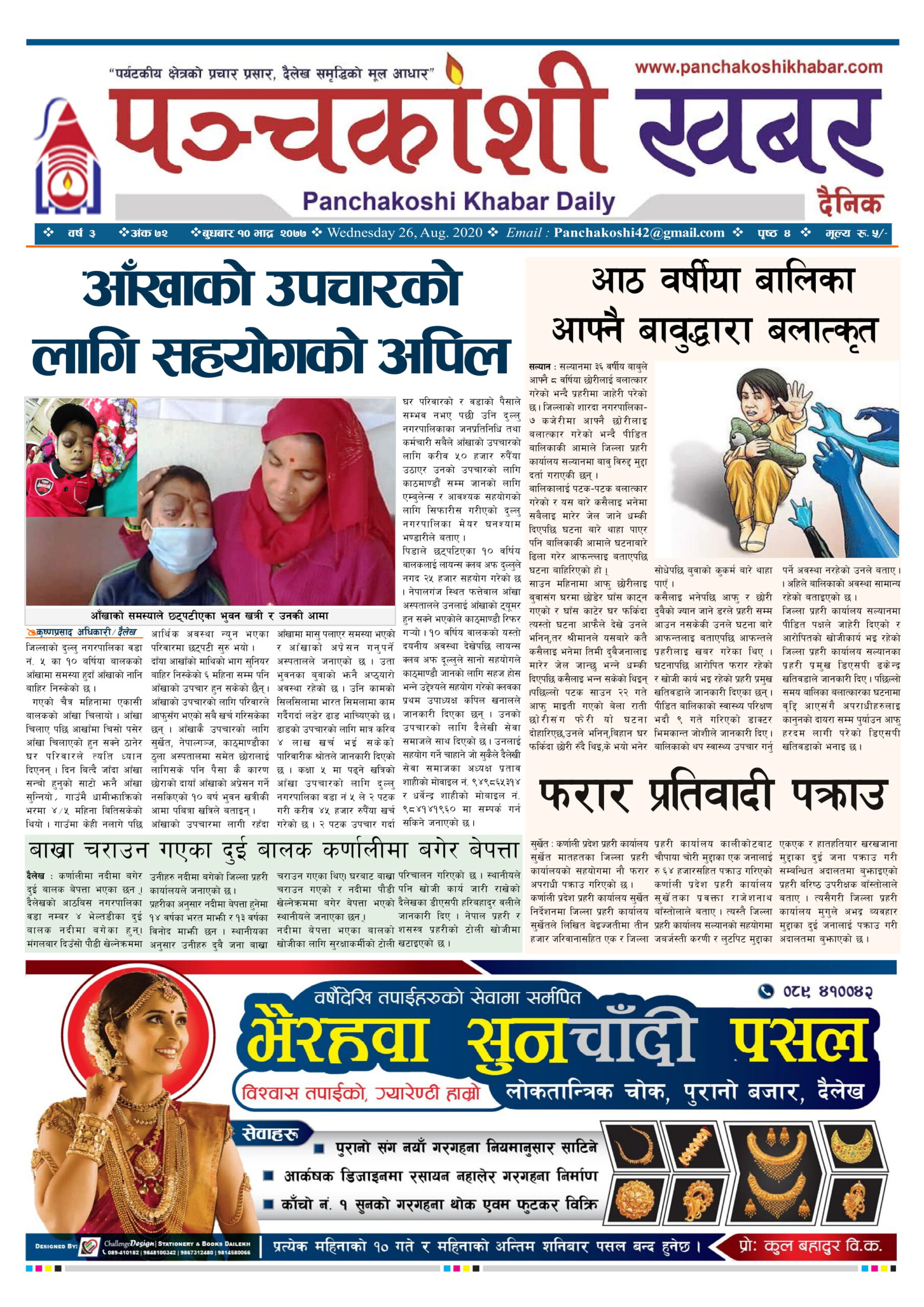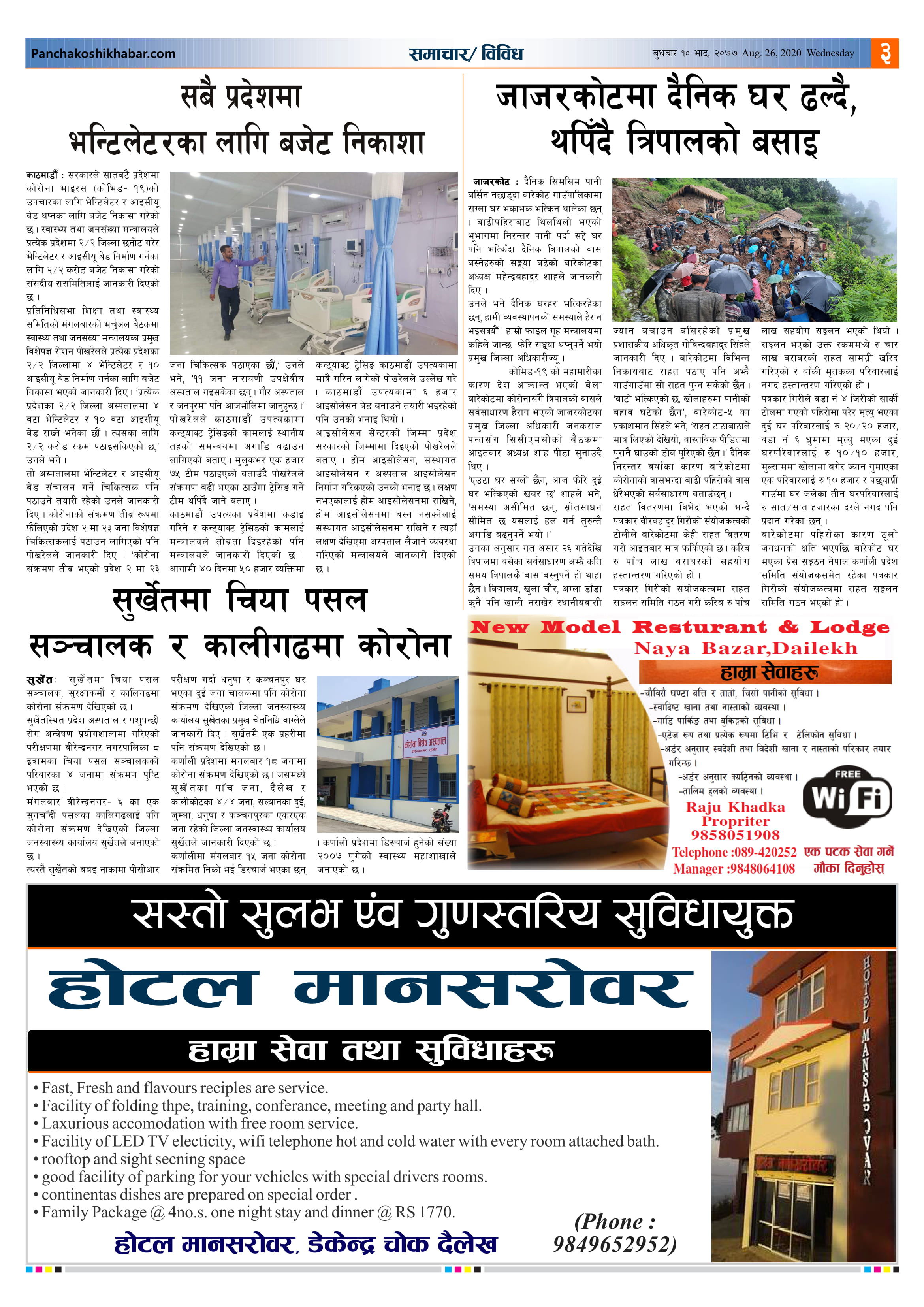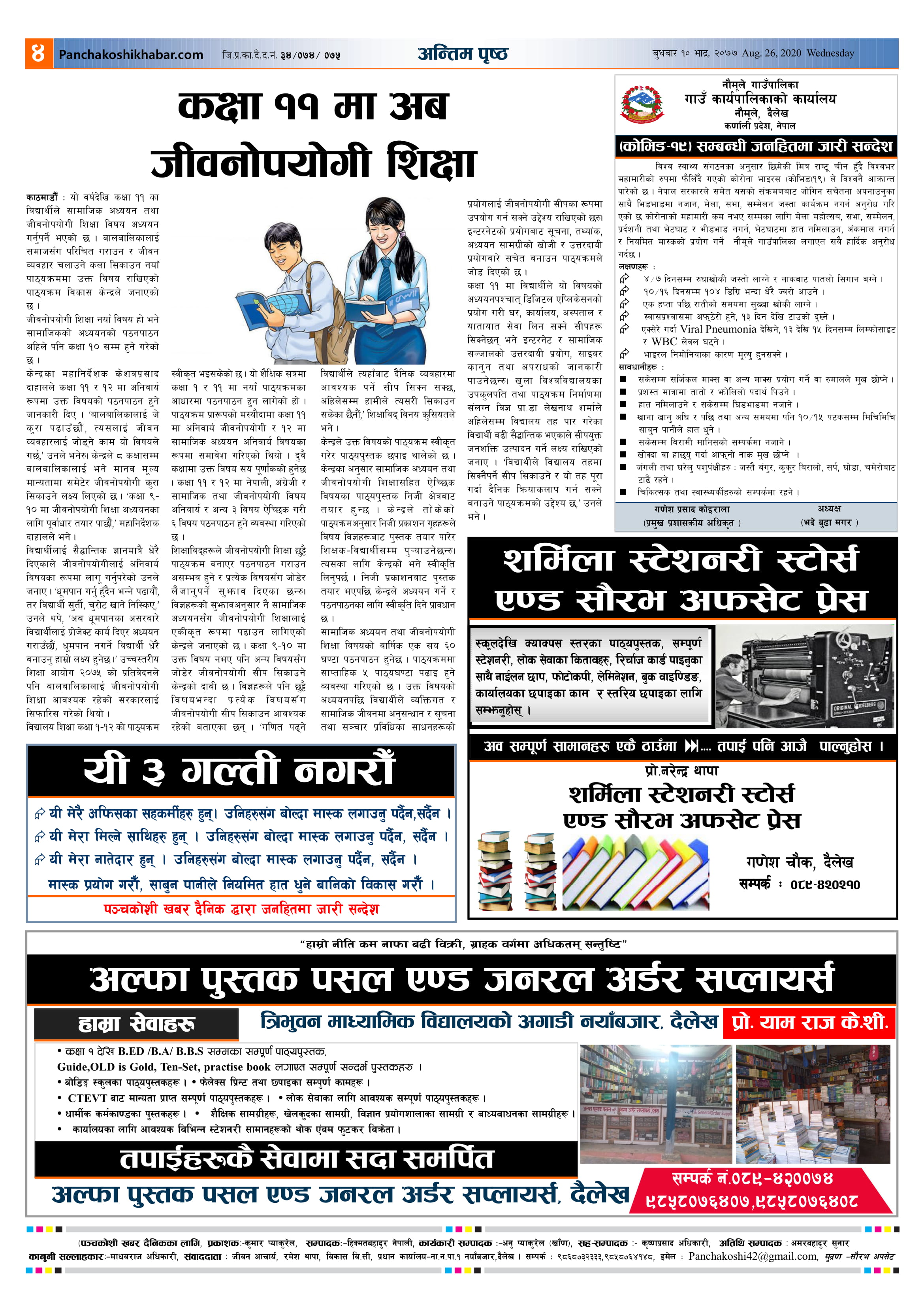 मिति २०७७ भाद्र १० गते प्रकाशित पंचकोशी खबर दैनिक