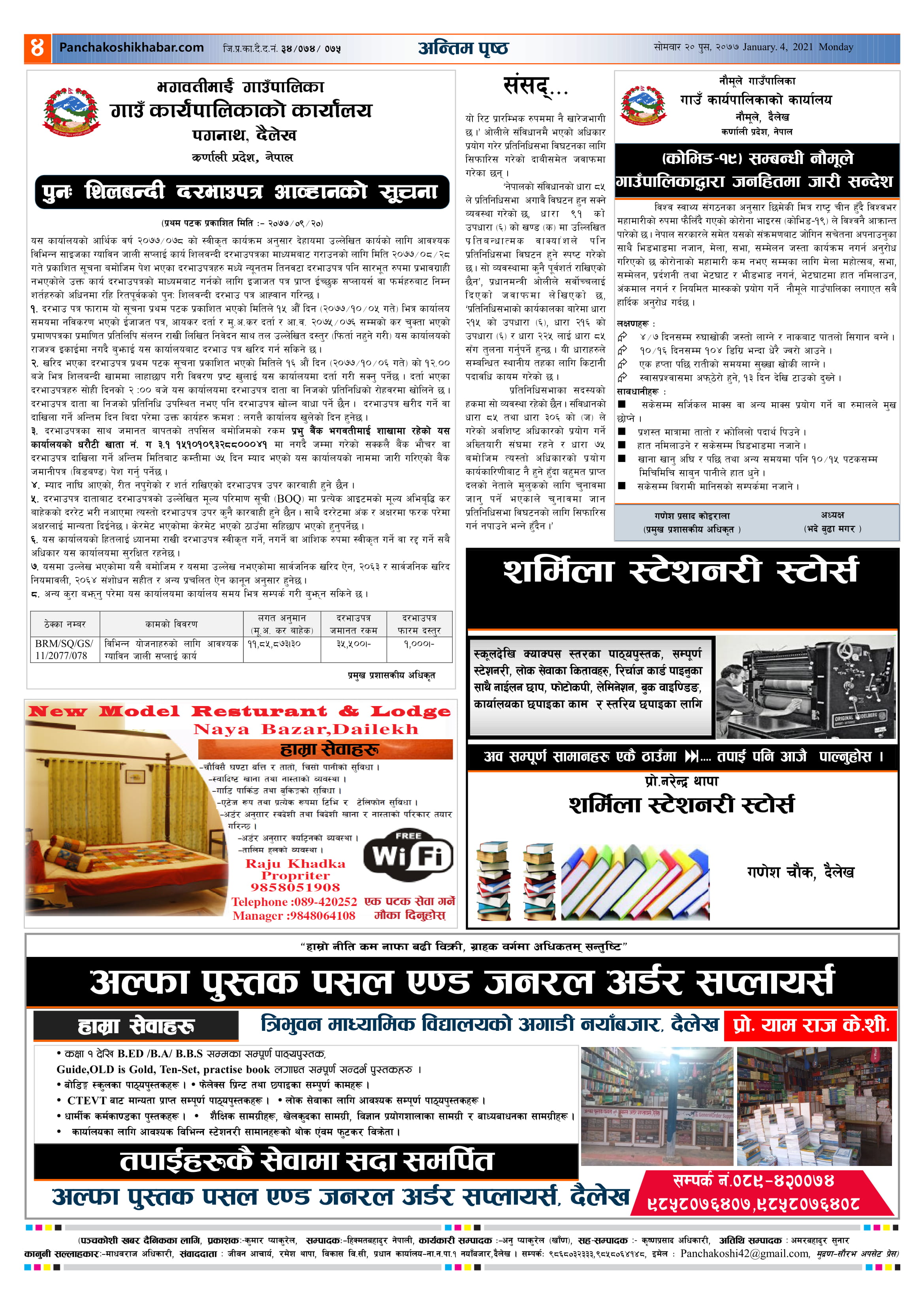 मिति २०७७ पुस २० गते प्रकाशित पंचकोशी खबर दैनिक कृष्णप्रसाद अधिकारी । २०७७ पुष २०, सोमबार मा प्रकाशित