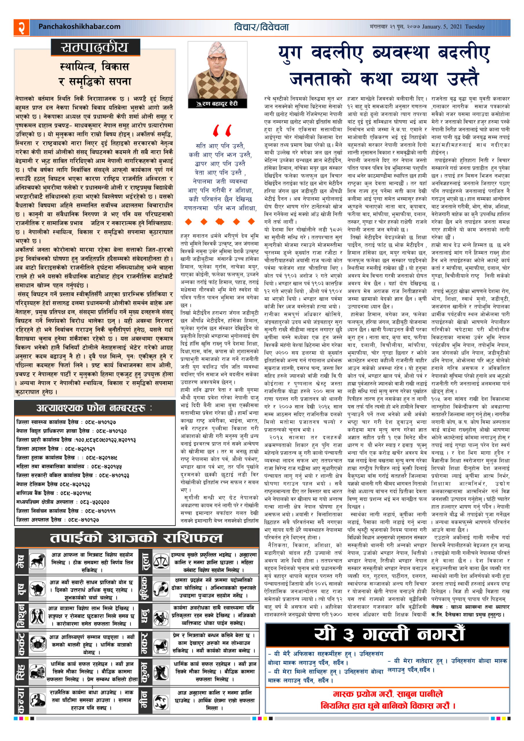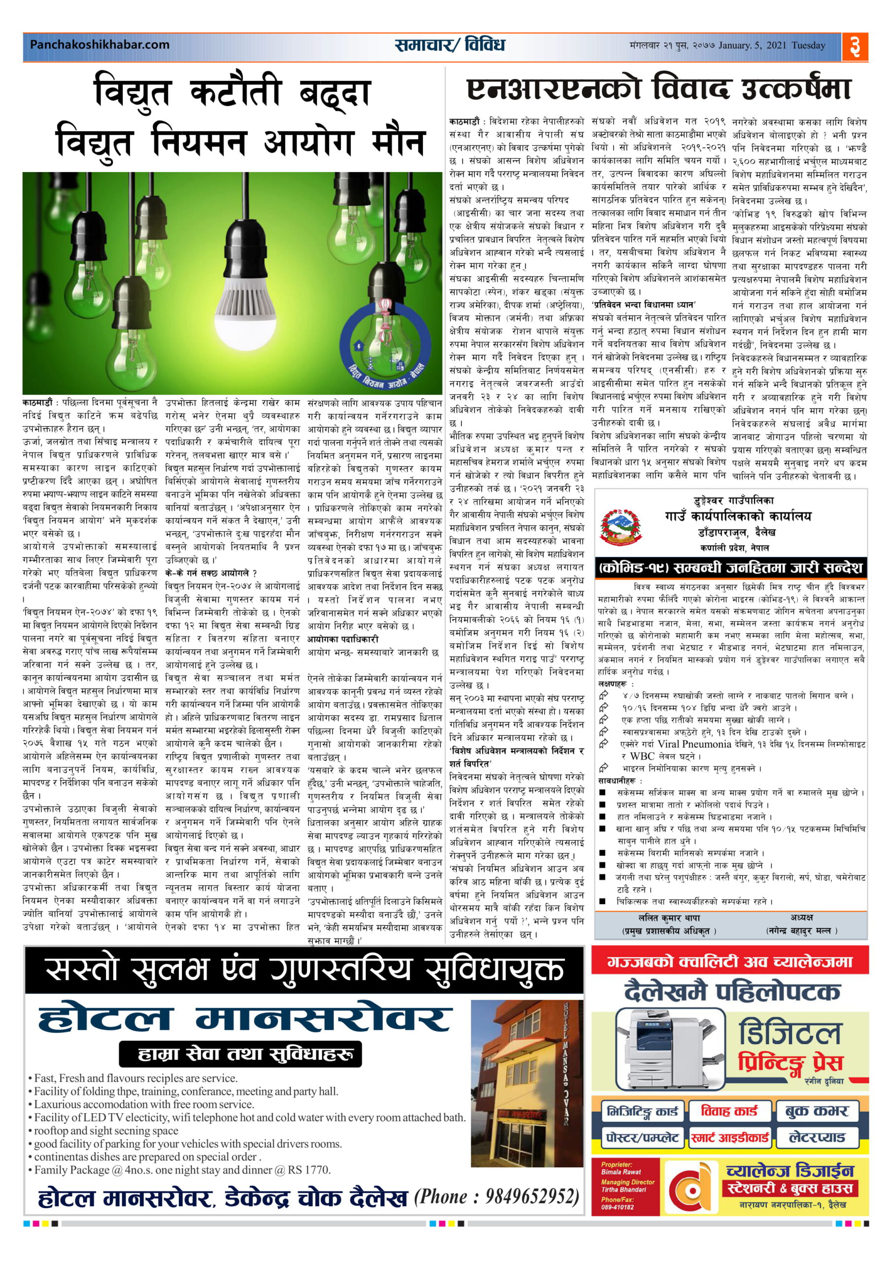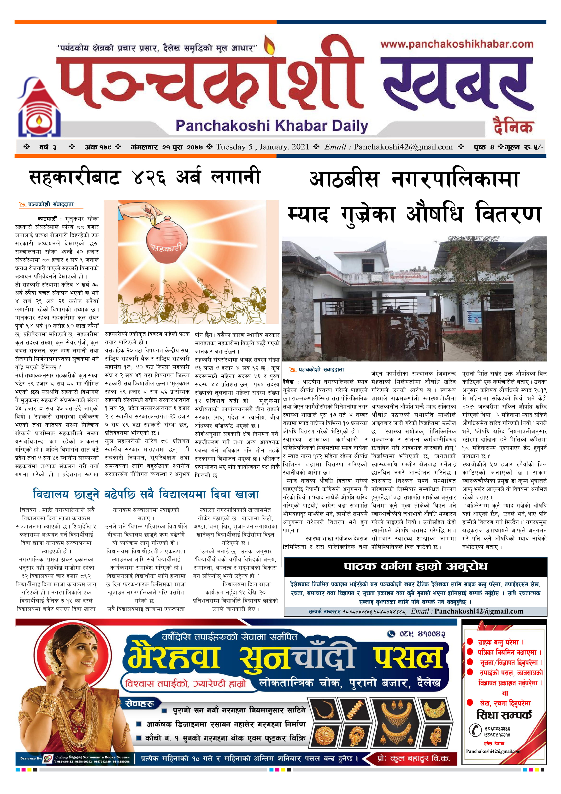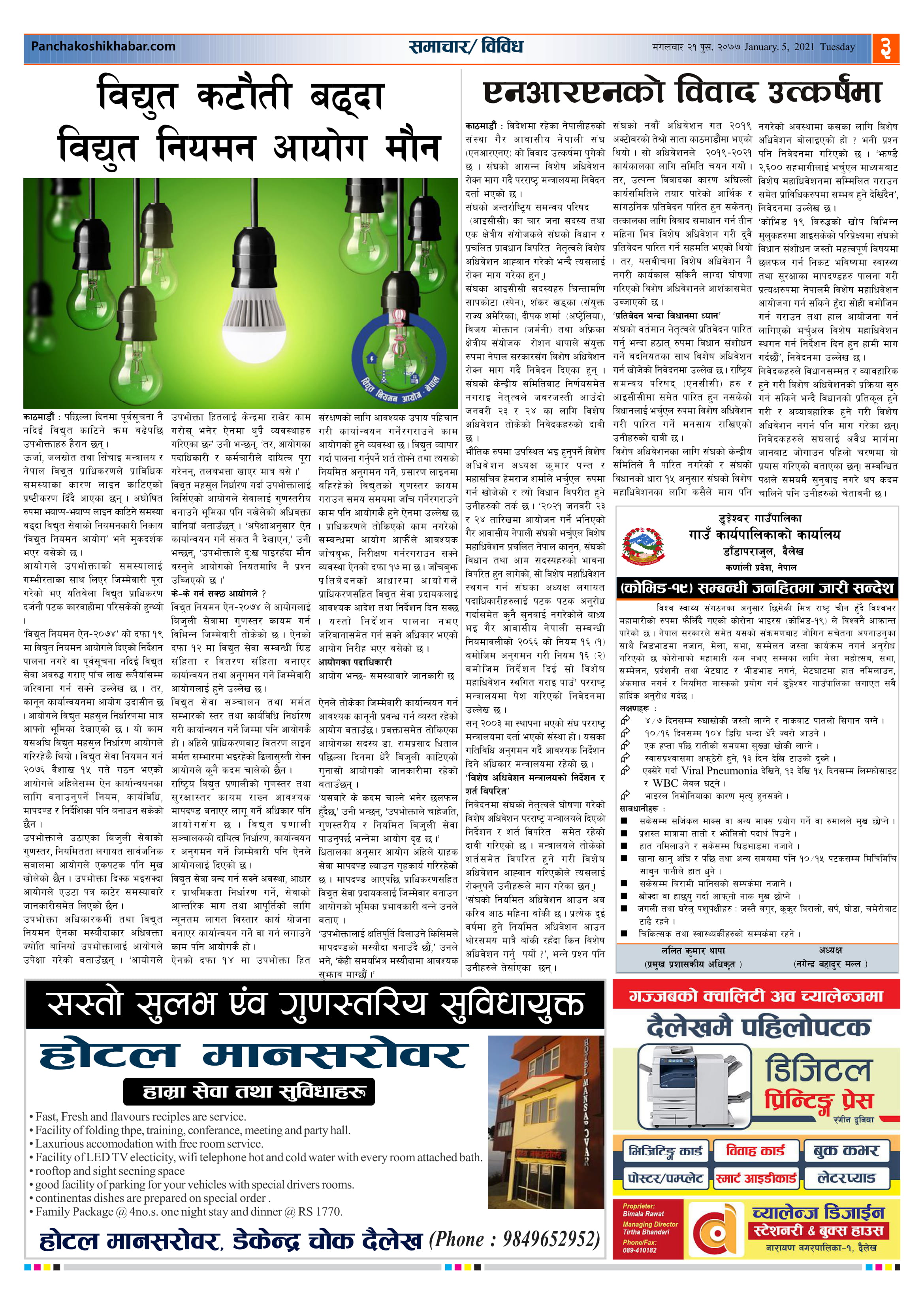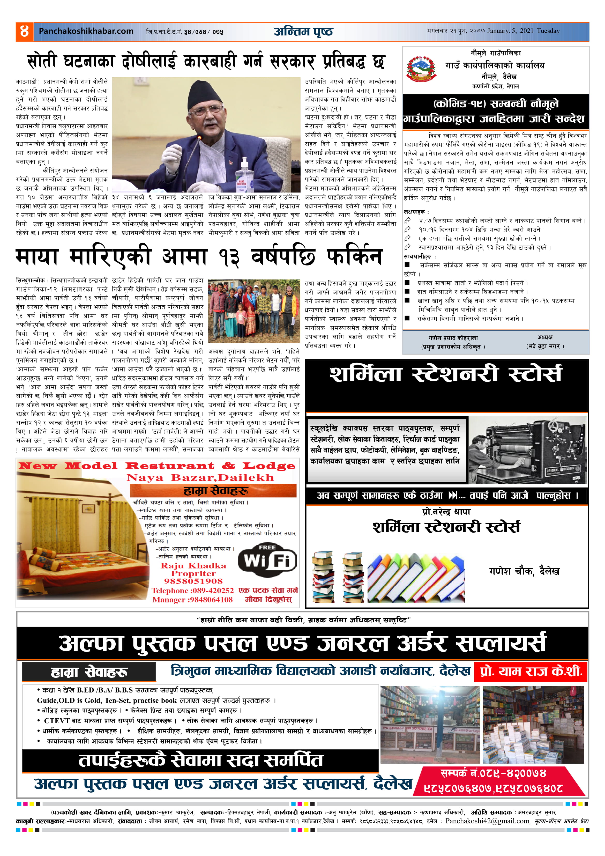 मिति २०७७ पुस २१ गते प्रकाशित पंचकोशी खबर दैनिक कृष्णप्रसाद अधिकारी । २०७७ पुष २२, बुधबार मा प्रकाशित