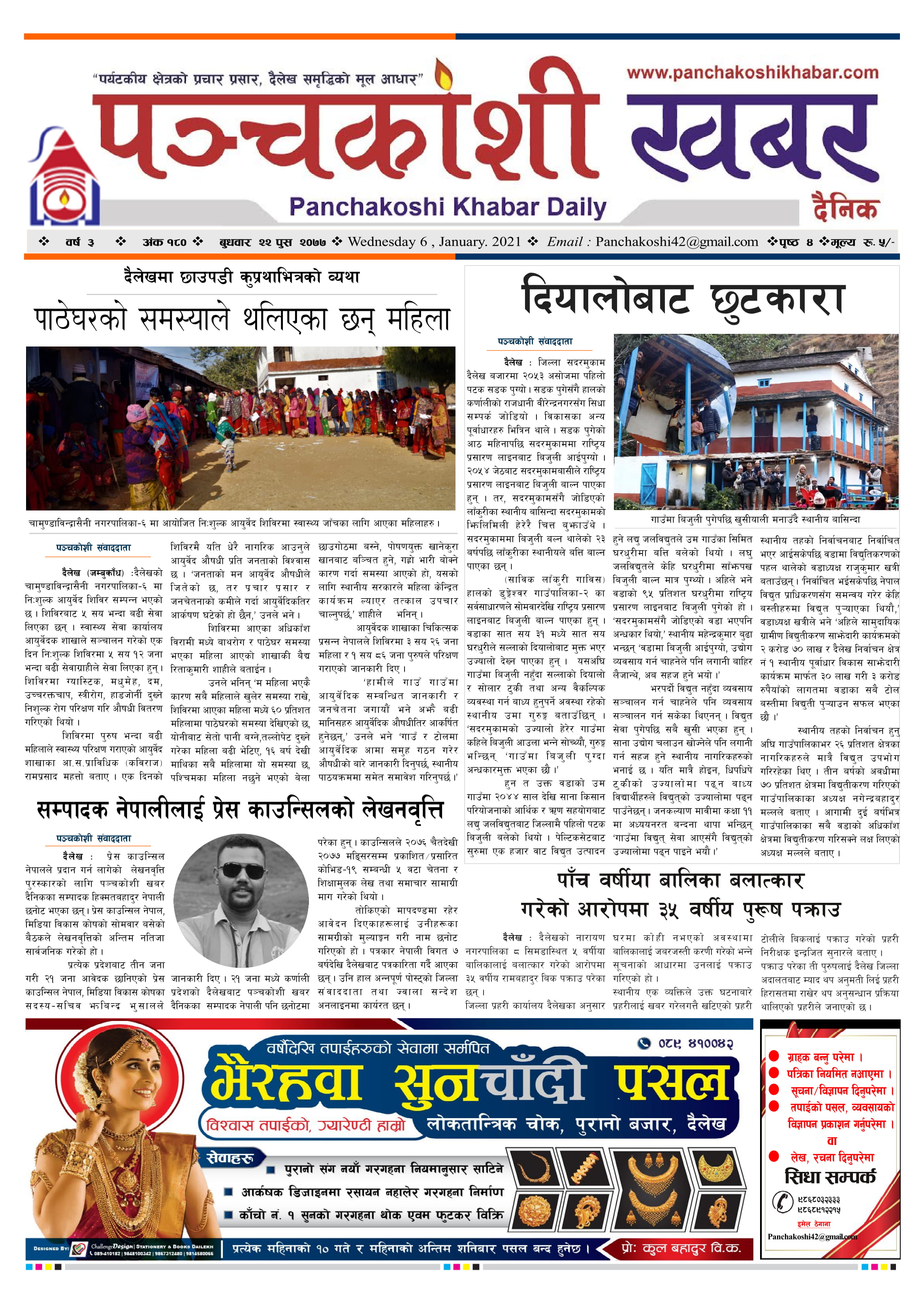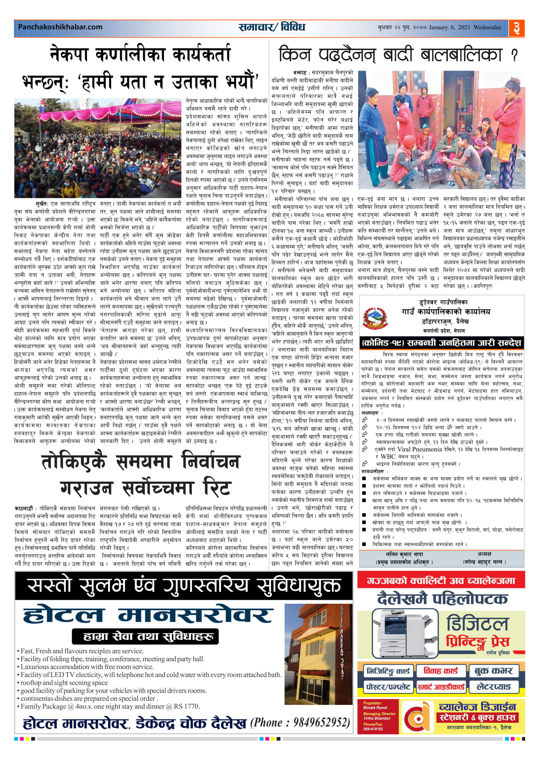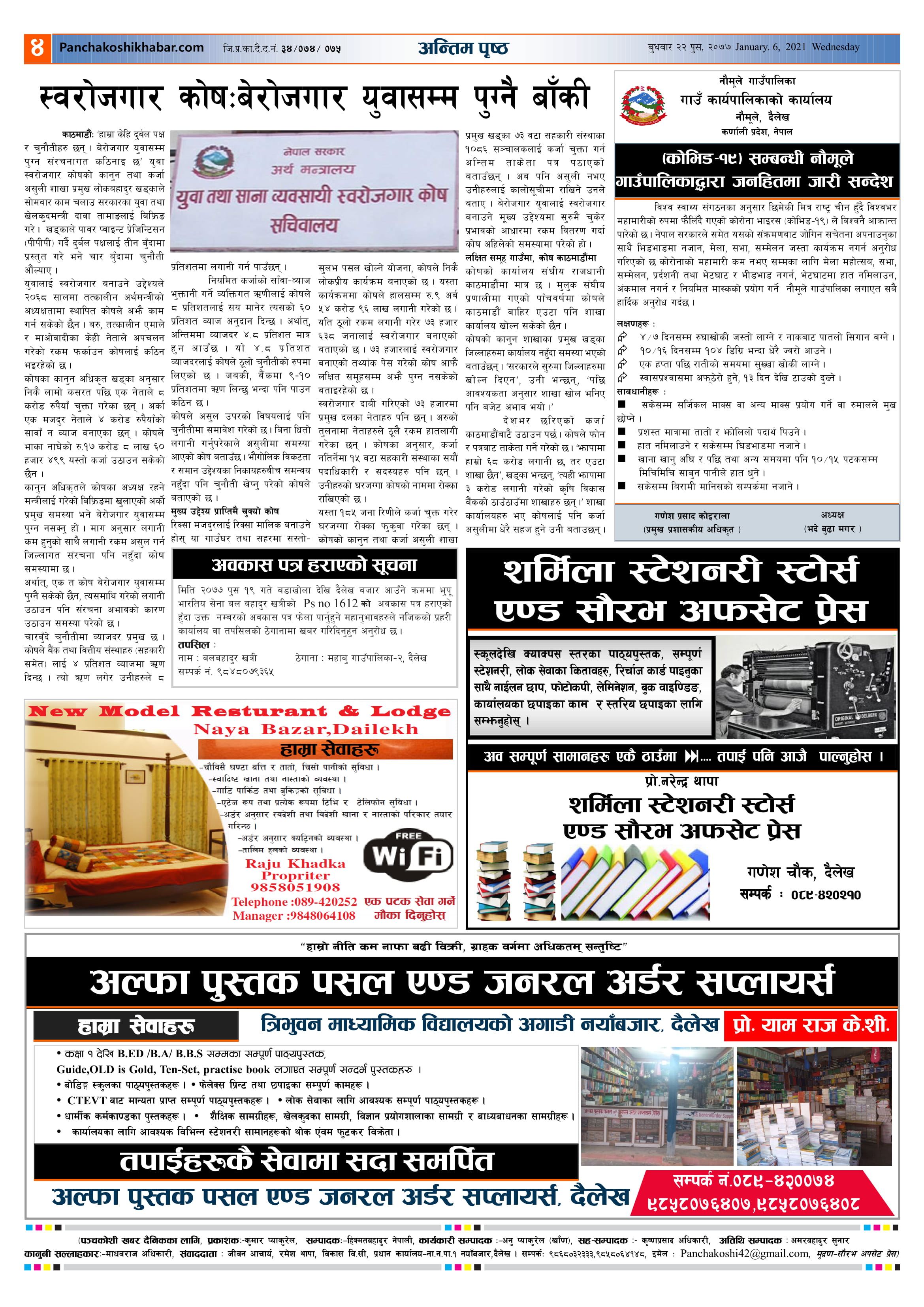 मिति २०७७ पुस २२ गते प्रकाशित पंचकोशी खबर दैनिक कृष्णप्रसाद अधिकारी । २०७७ पुष २२, बुधबार मा प्रकाशित