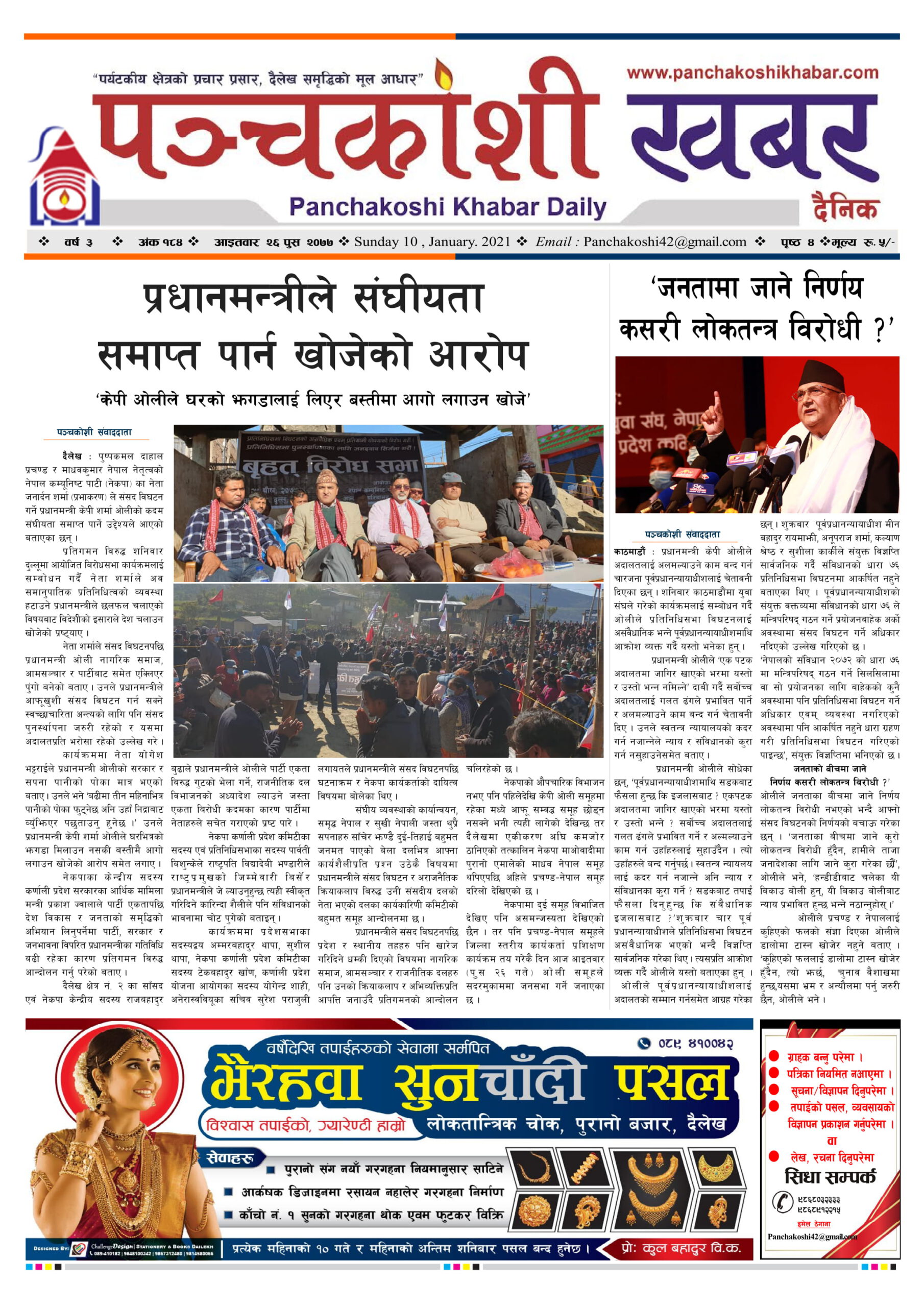 मिति २०७७ पुस २६ गते प्रकाशित पंचकाेशी खबर दैनिक कृष्णप्रसाद अधिकारी । २०७७ पुष २६, आईतवार मा प्रकाशित