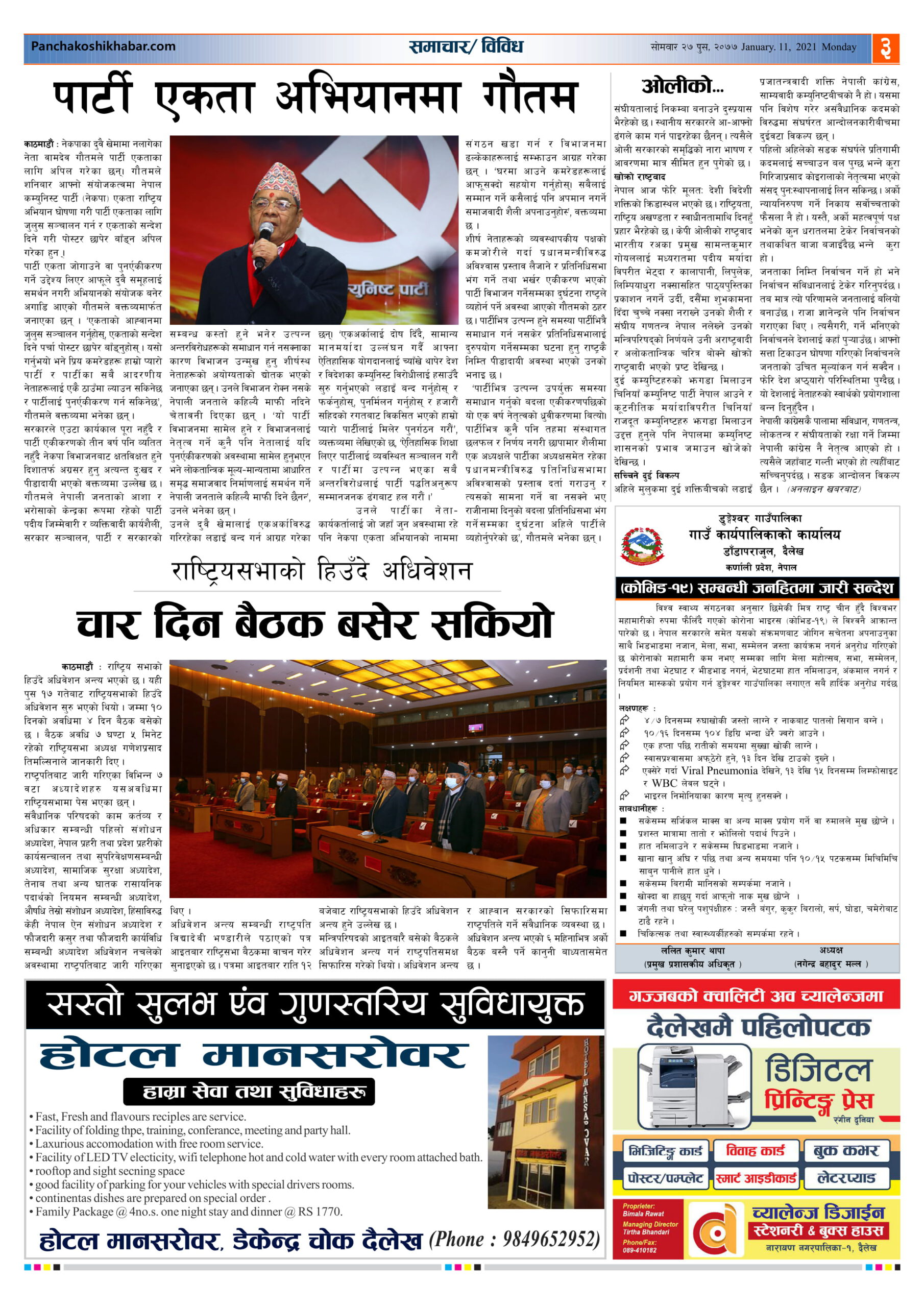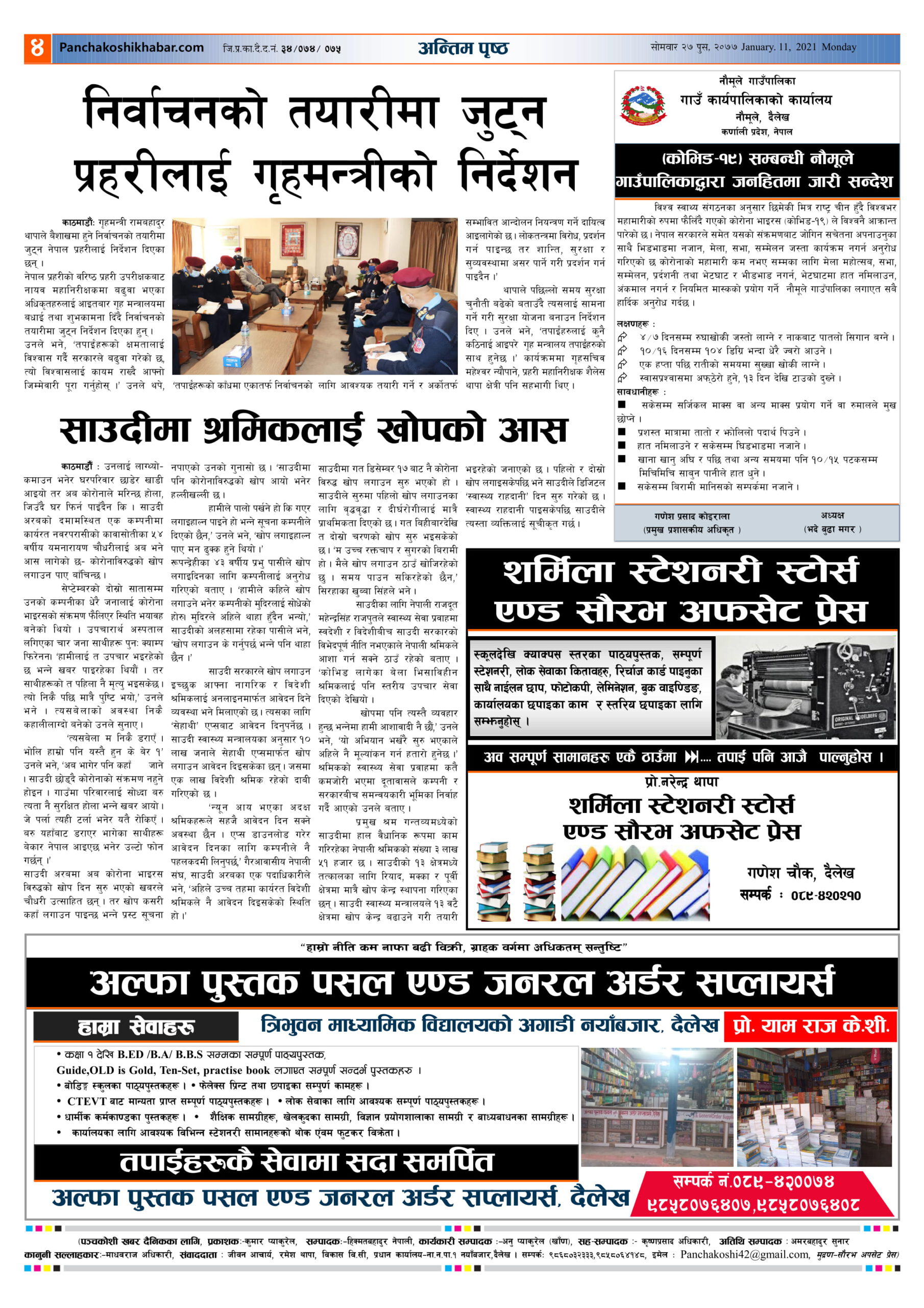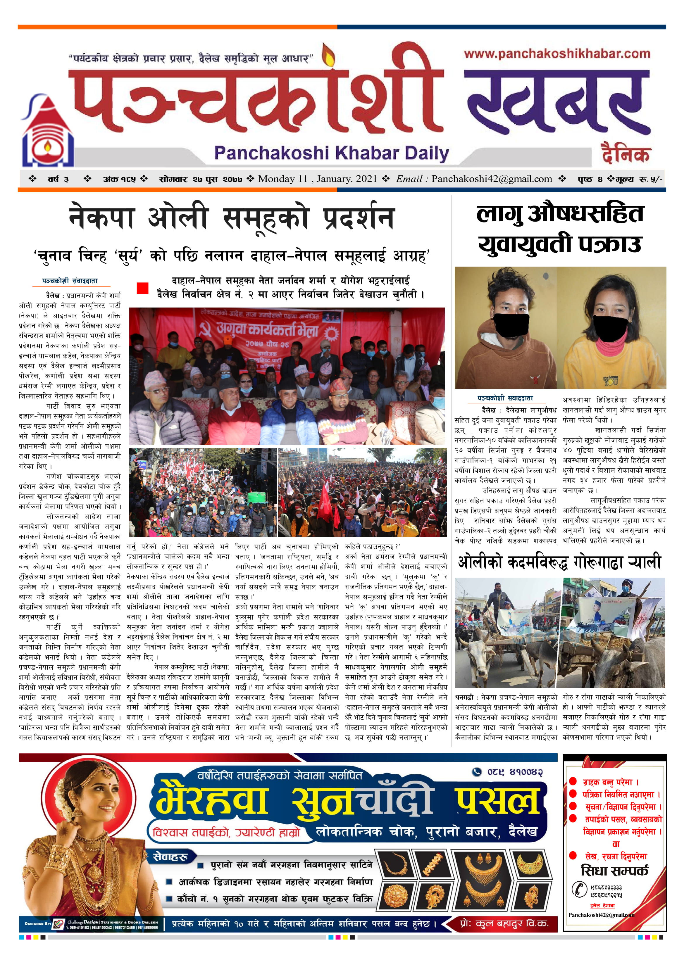 मिति २०७७ पुस २७ गते प्रकाशित पंचकाेशी खबर दैनिक कृष्णप्रसाद अधिकारी । २०७७ पुष २६, आईतवार मा प्रकाशित