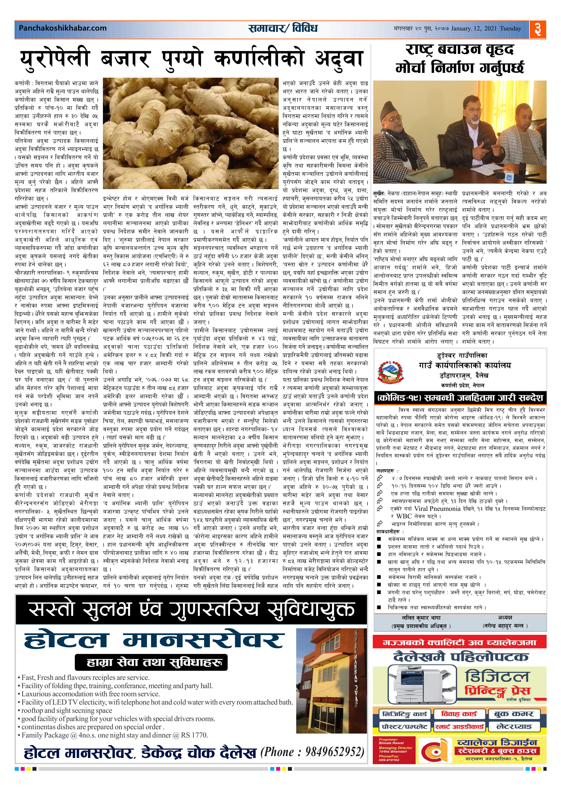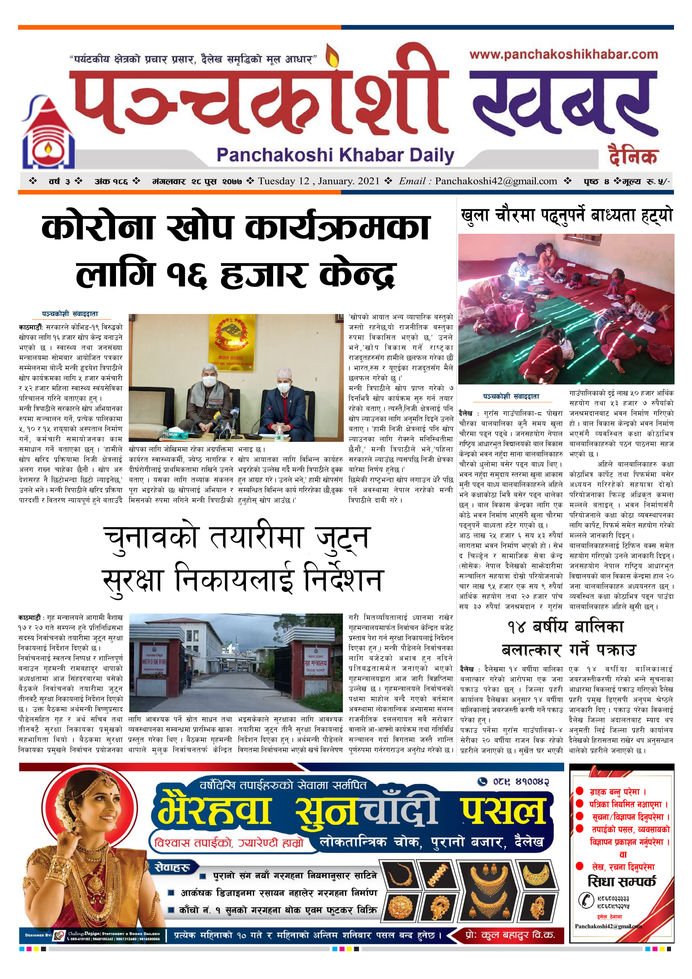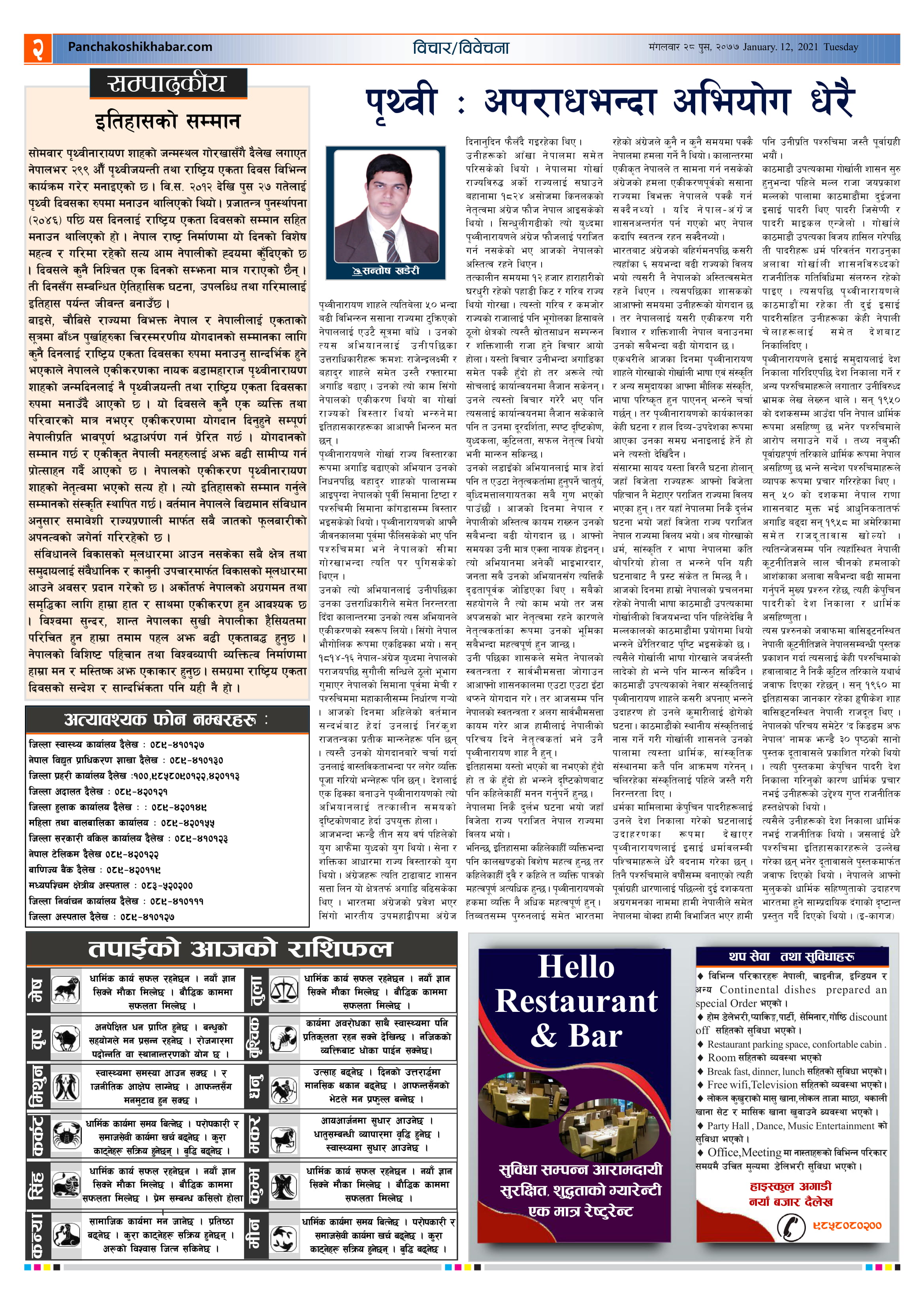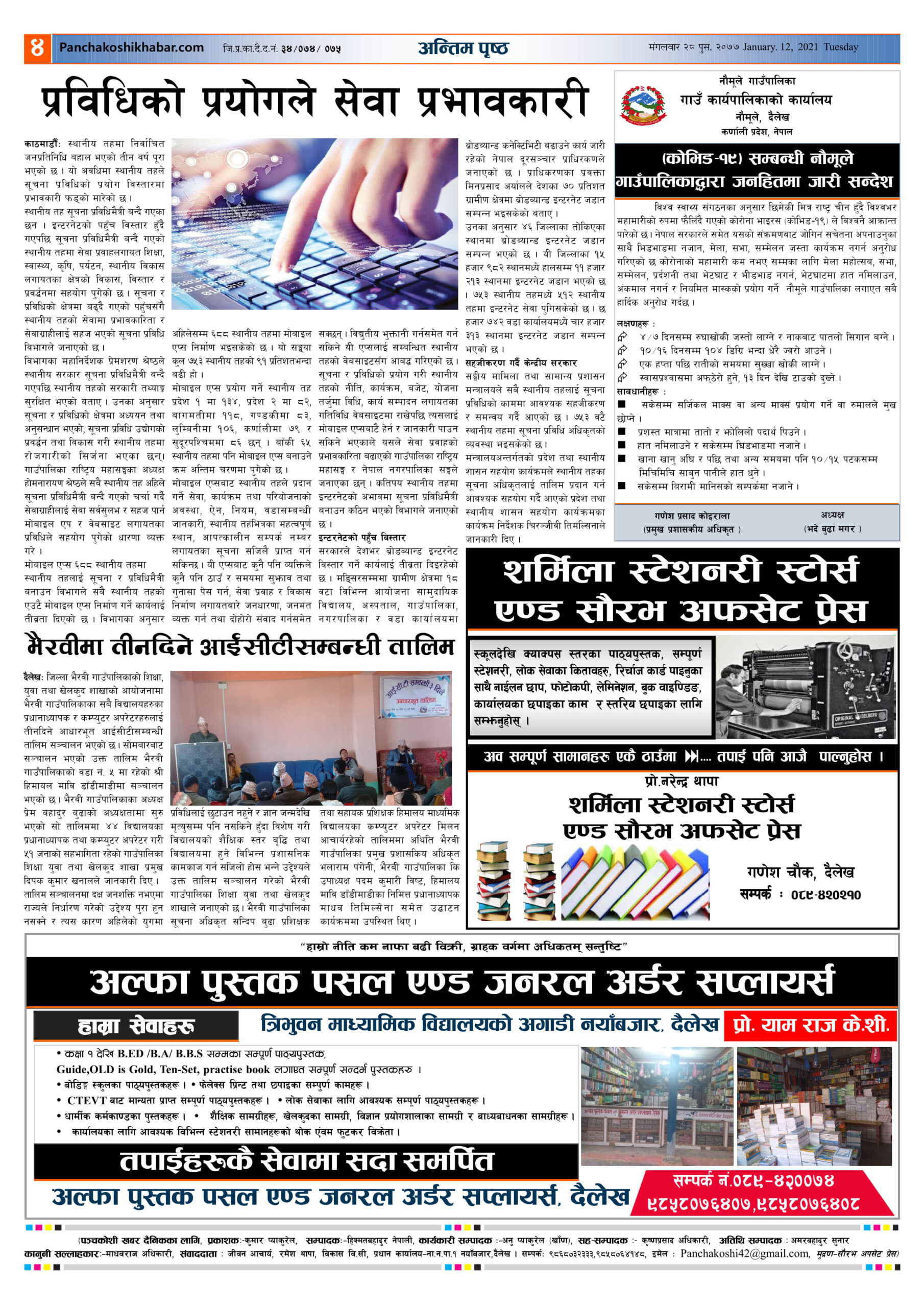मिति २०७७ पुस २८ गते प्रकाशित पंचकोशी खबर दैनिक कृष्णप्रसाद अधिकारी । २०७७ पुष २८, मंगलवार मा प्रकाशित