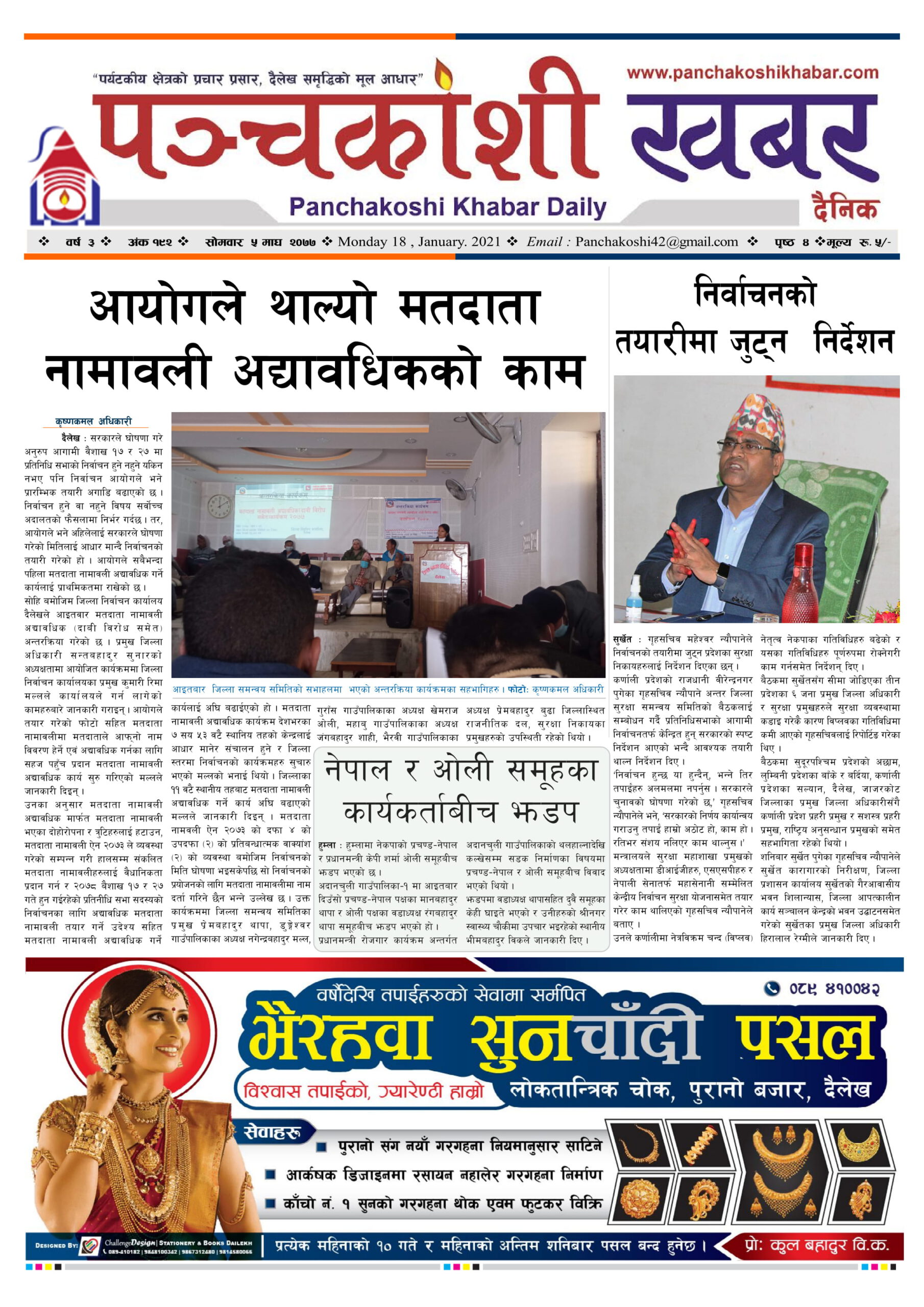 मिति २०७७ माघ ५ गते प्रकाशित पंचकोशी खबर दैनिक