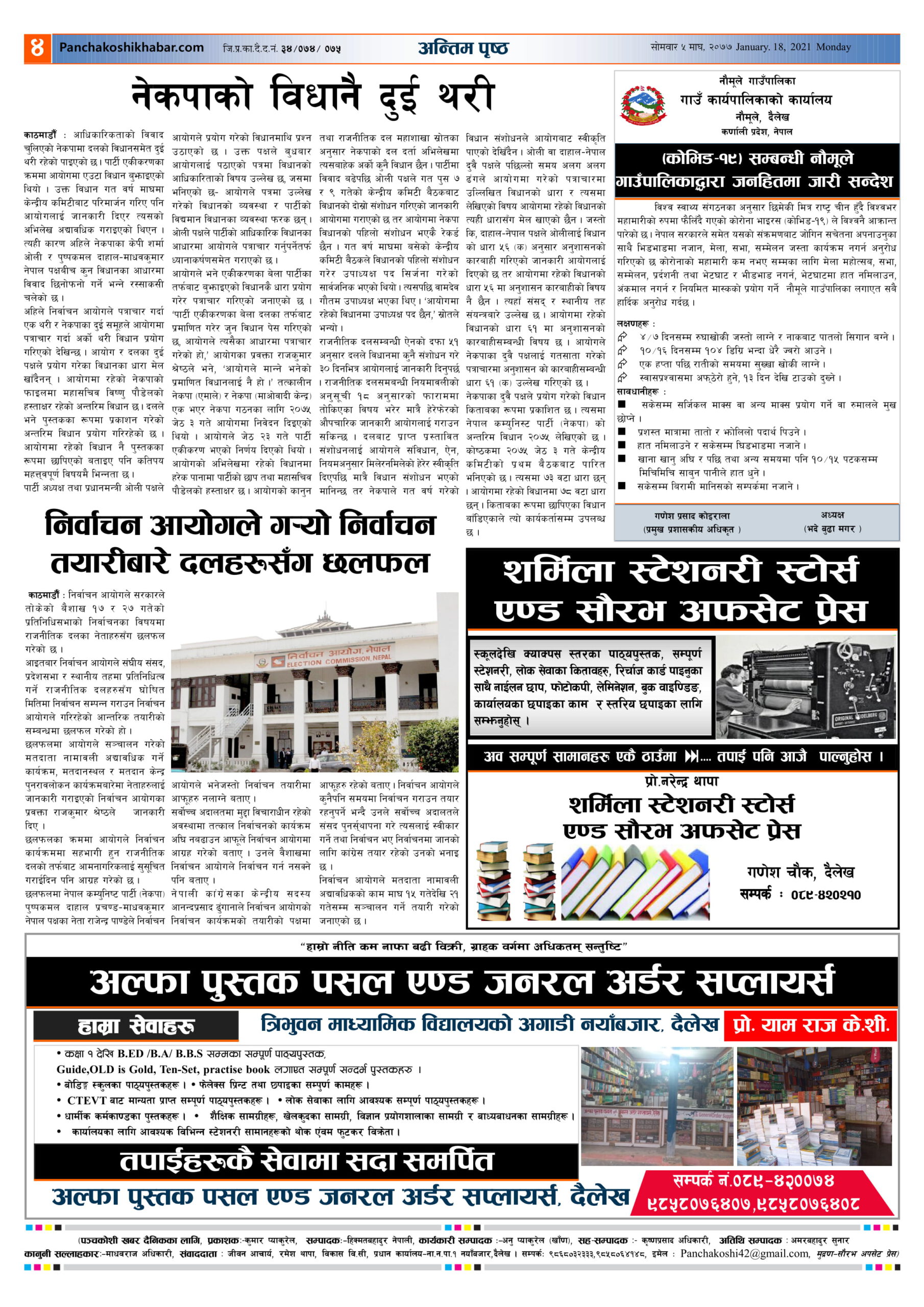 २०७७ माघ ५, सोमबार मा प्रकाशित