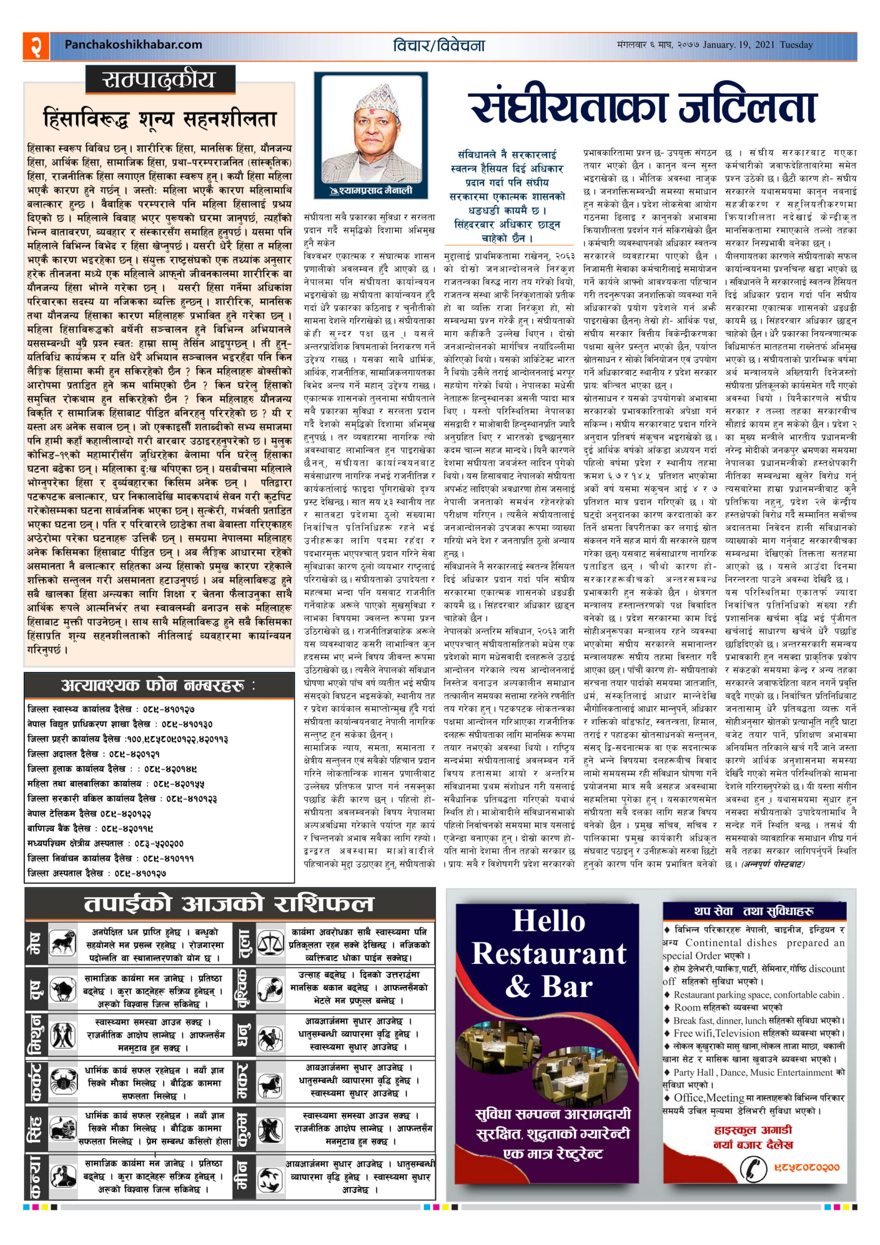 २०७७ माघ १२, सोमबार मा प्रकाशित