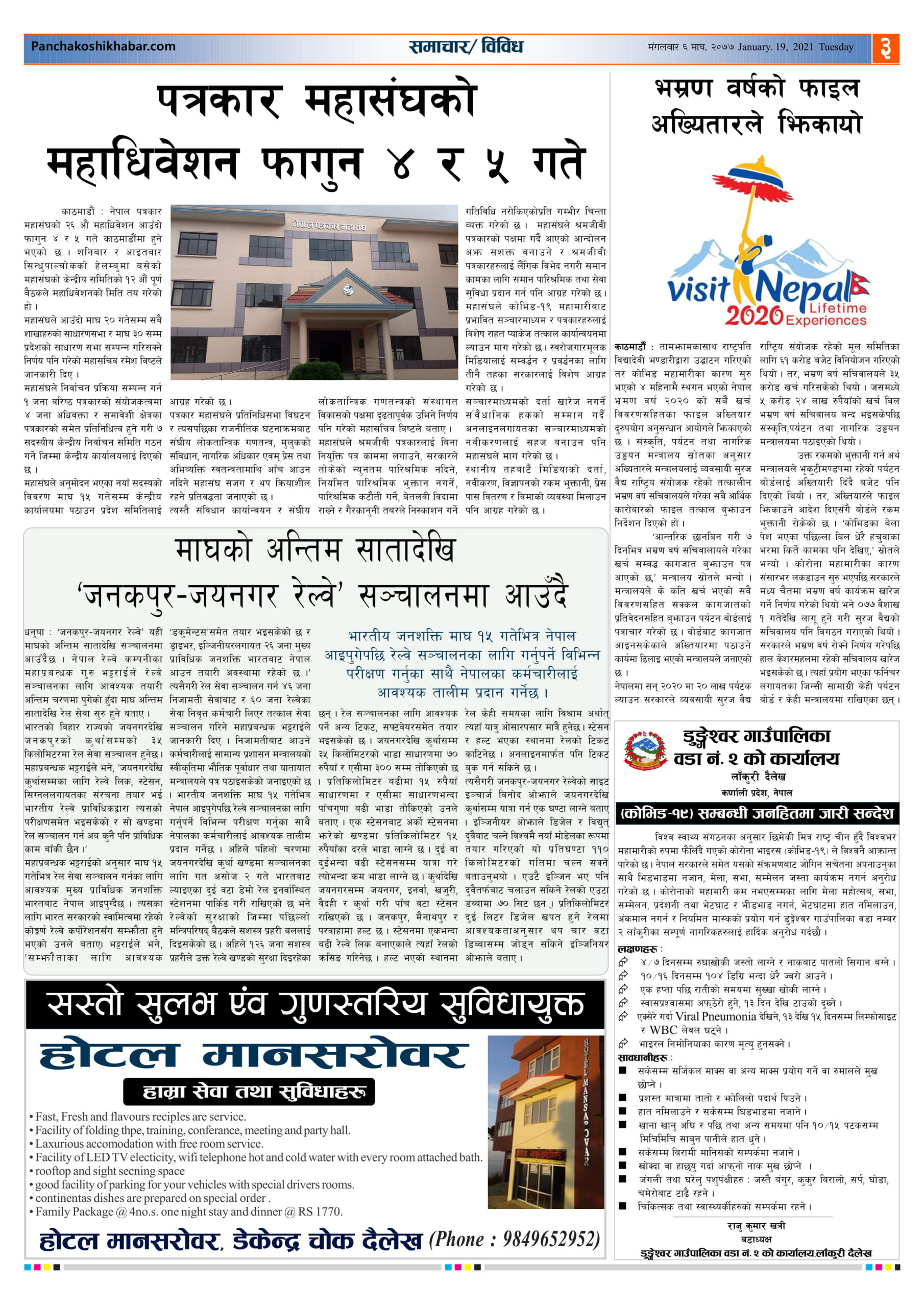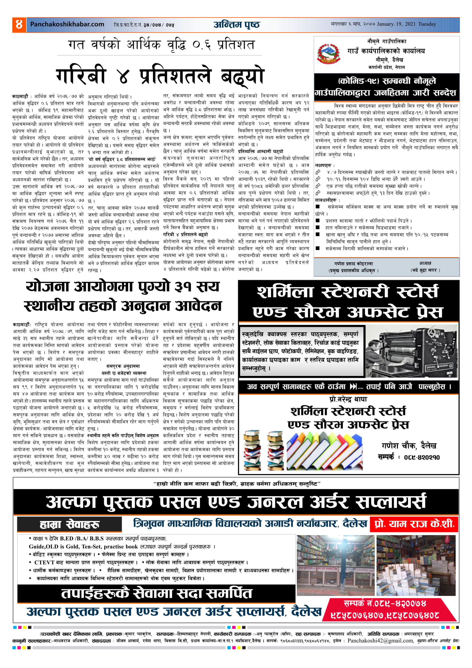 मिति २०७७ माघ ६ गते प्रकाशित पंचकोशी खबर दैनिक
