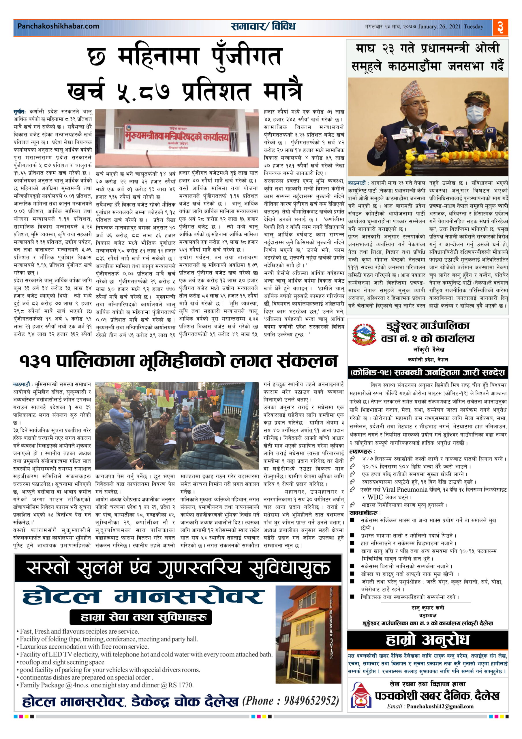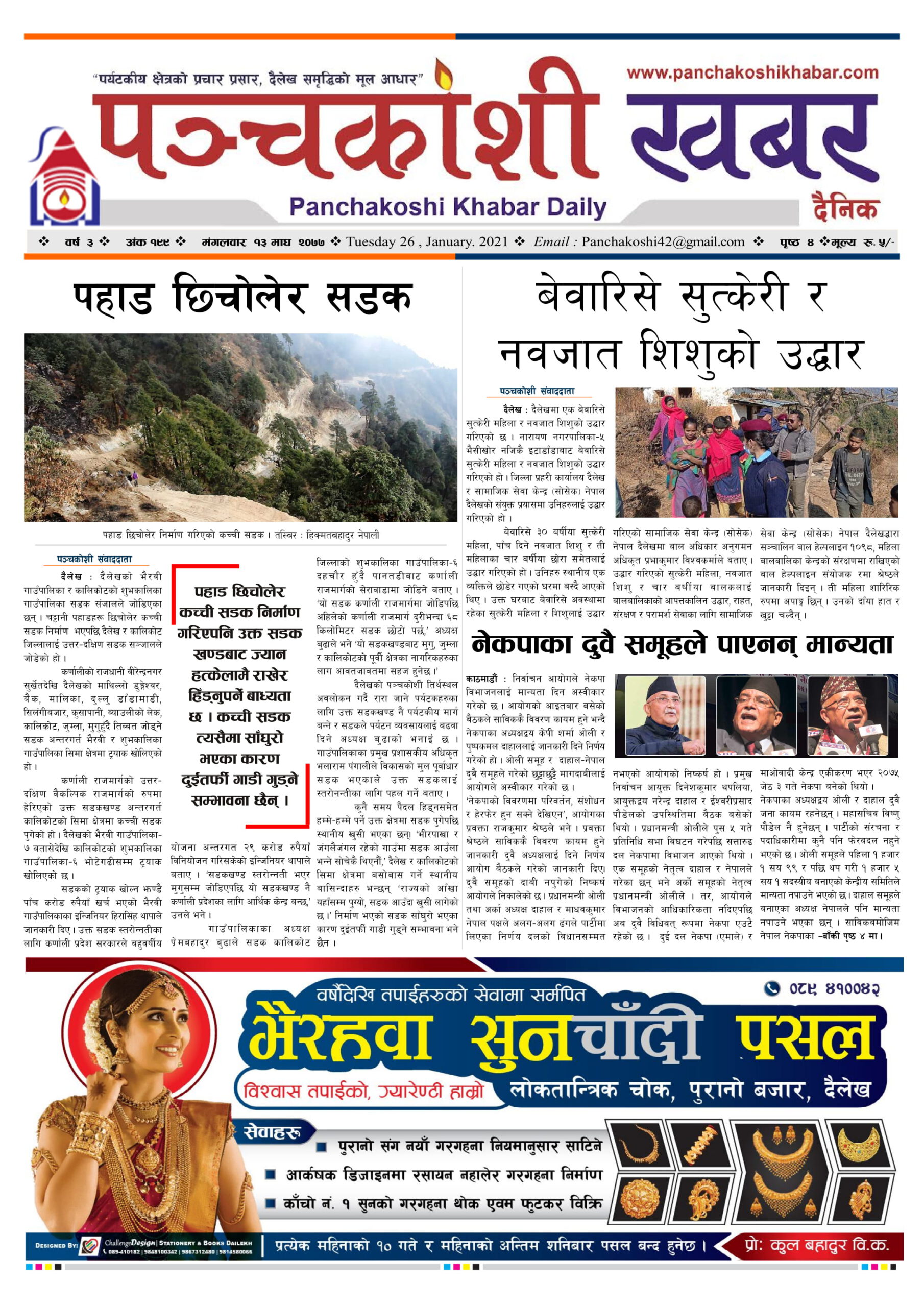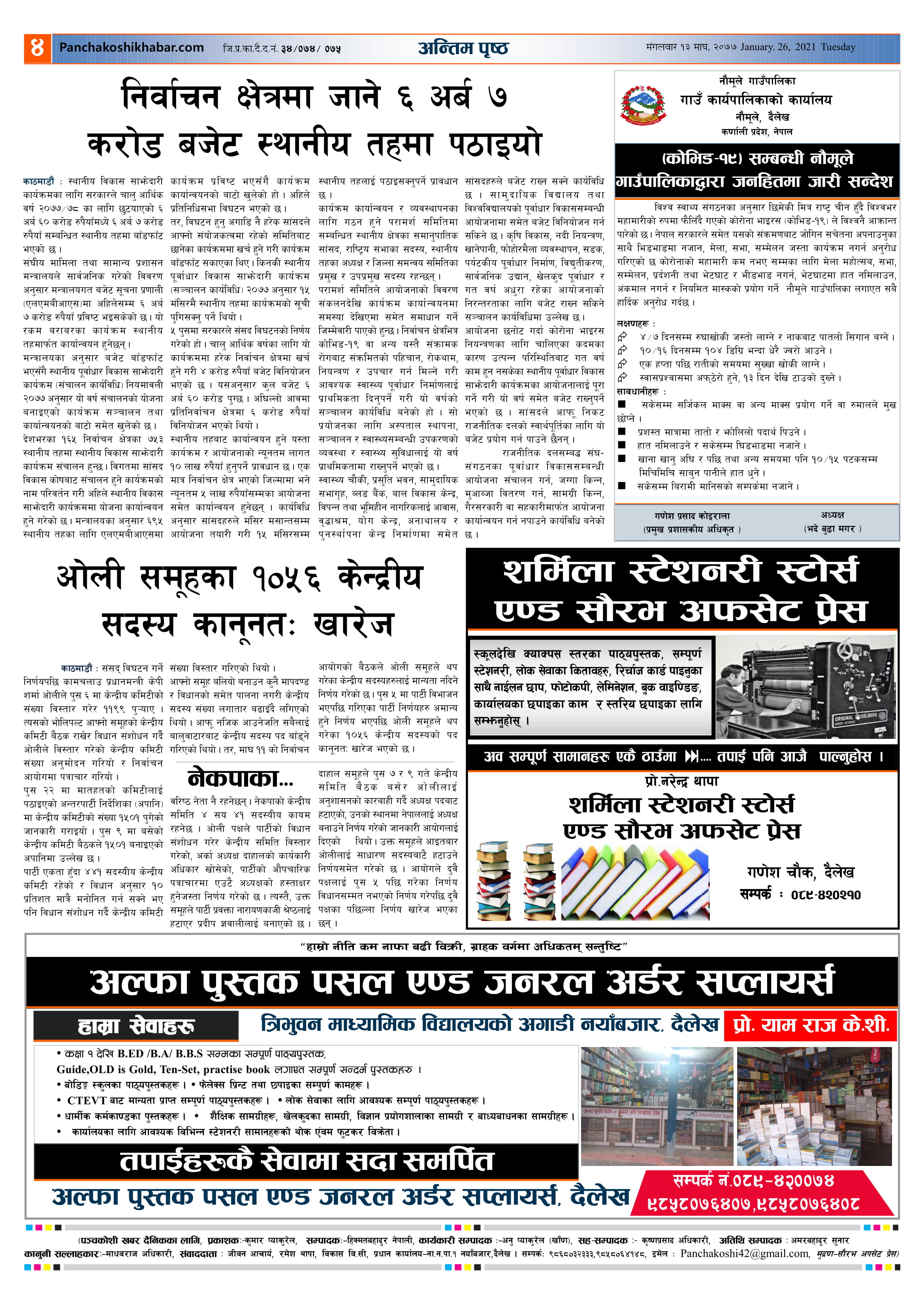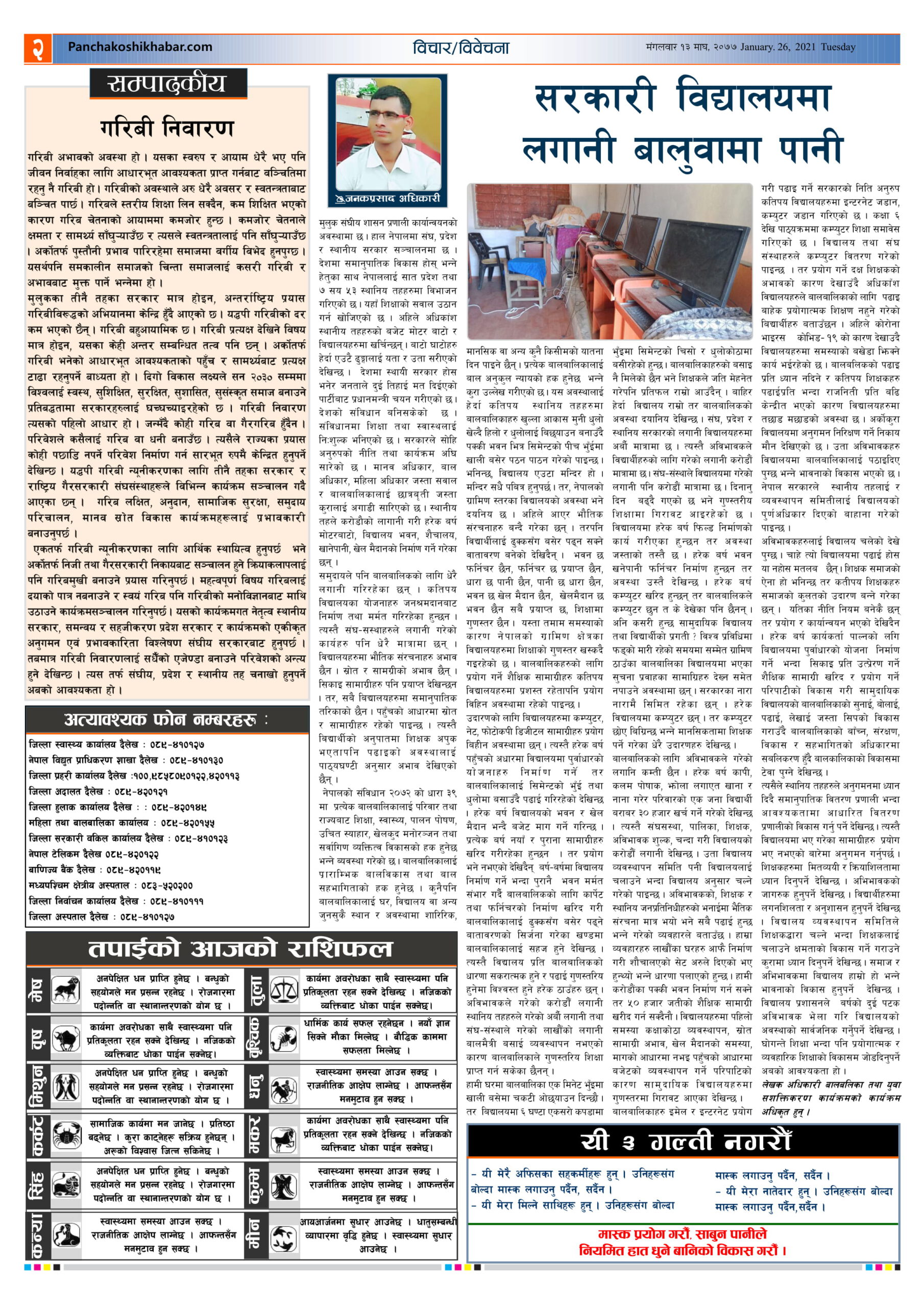 मिति २०७७ माघ १३ गते प्रकाशित पंचकोशी खबर दैनिक कृष्णप्रसाद अधिकारी । २०७७ माघ १३, मंगलवार मा प्रकाशित