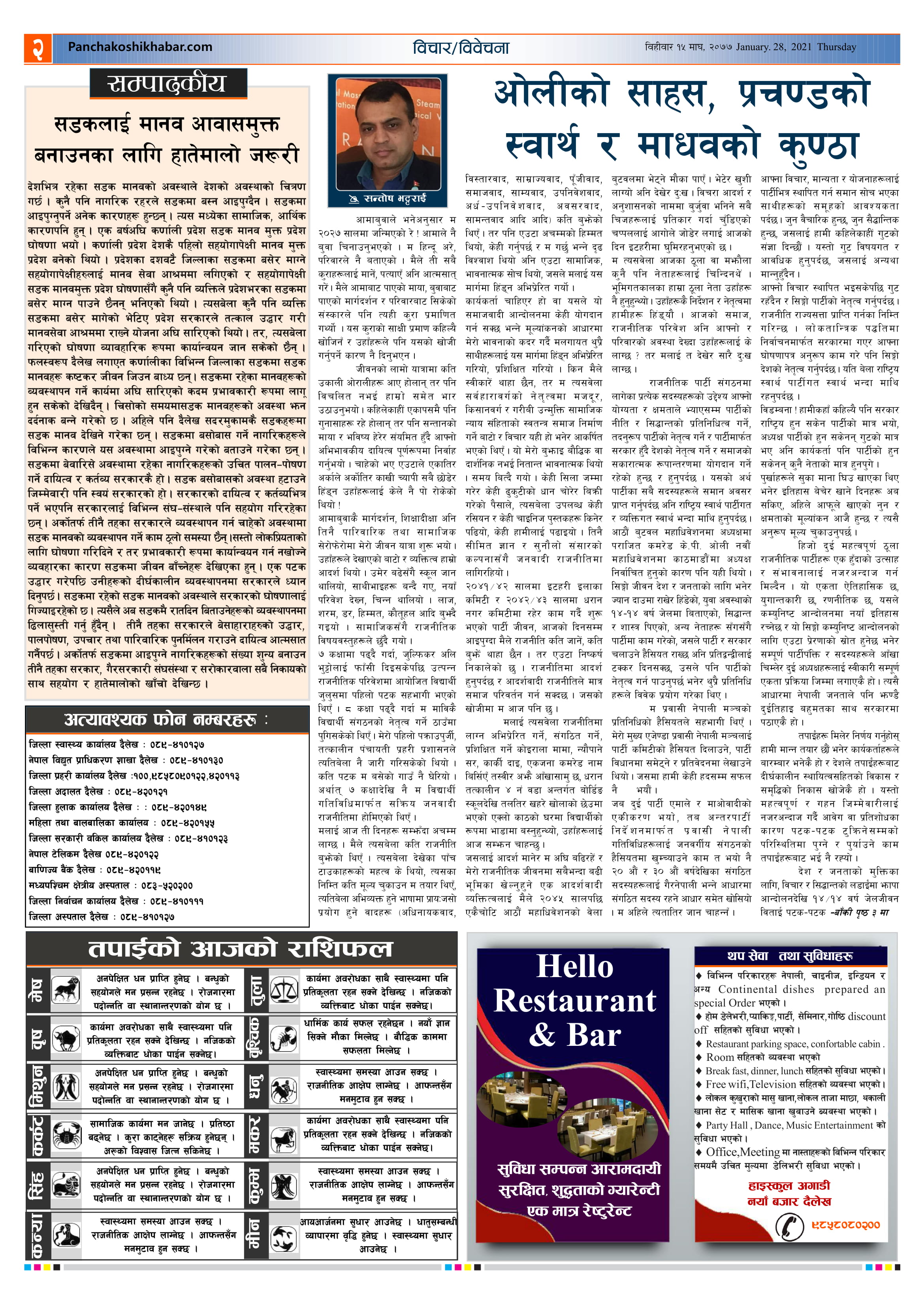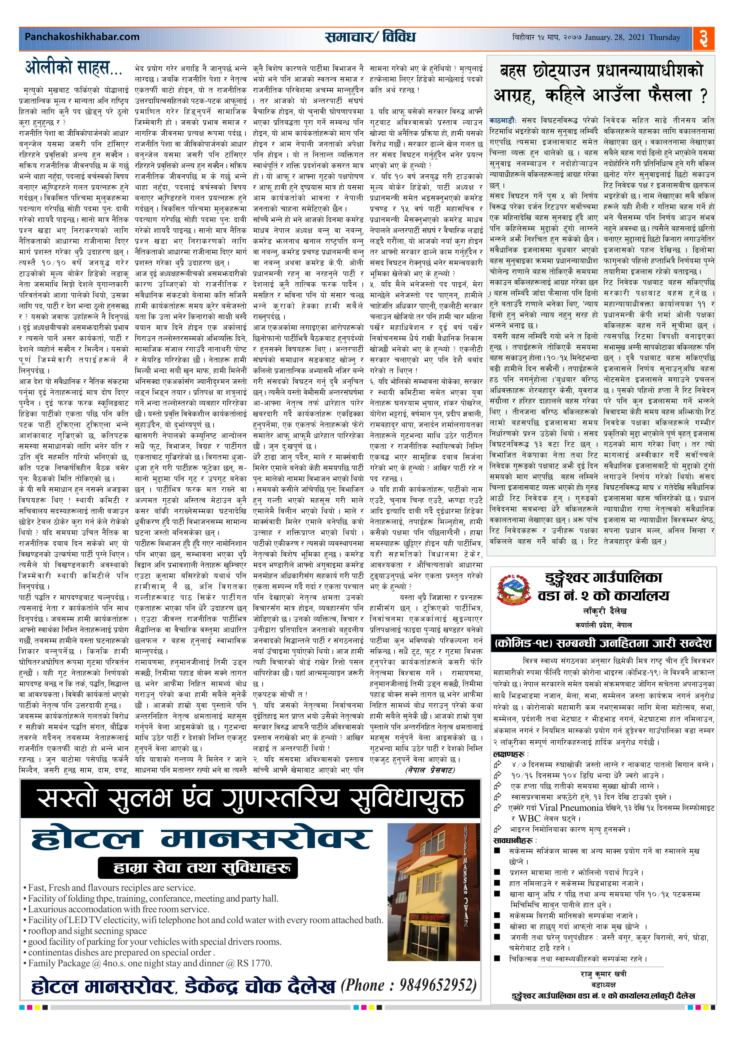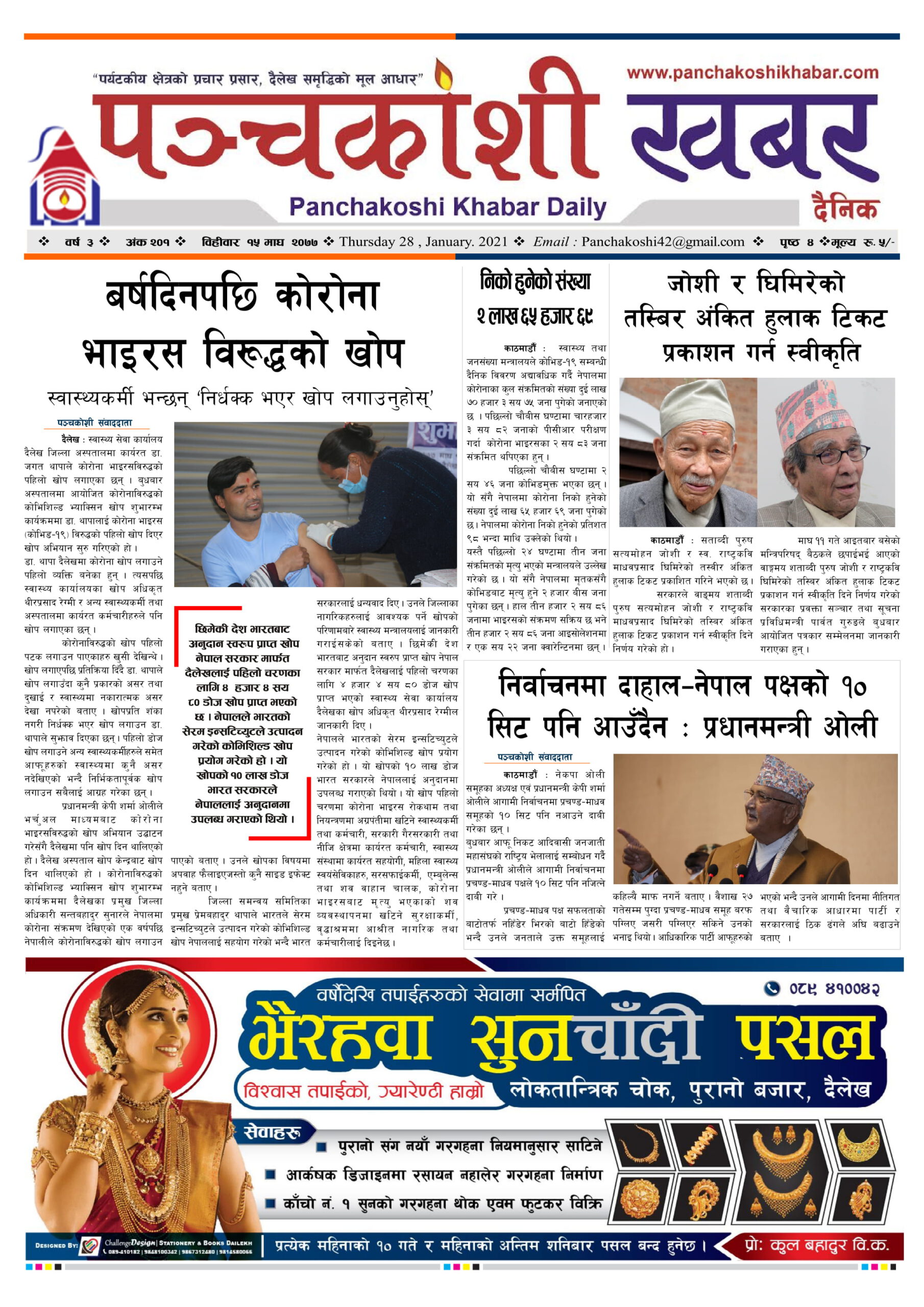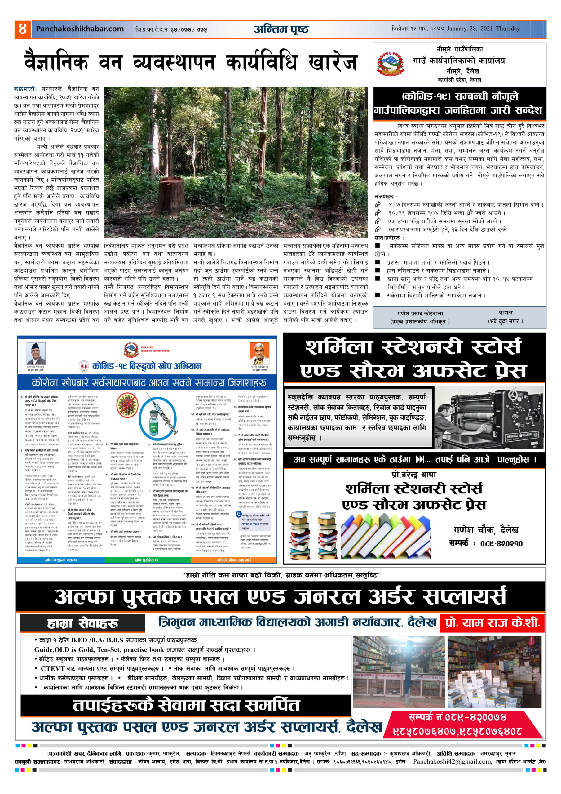 मिति २०७७ माघ १५ गते प्रकाशित पंचकोशी खबर दैनिक कृष्णप्रसाद अधिकारी । २०७७ माघ १५, बिहीबार मा प्रकाशित