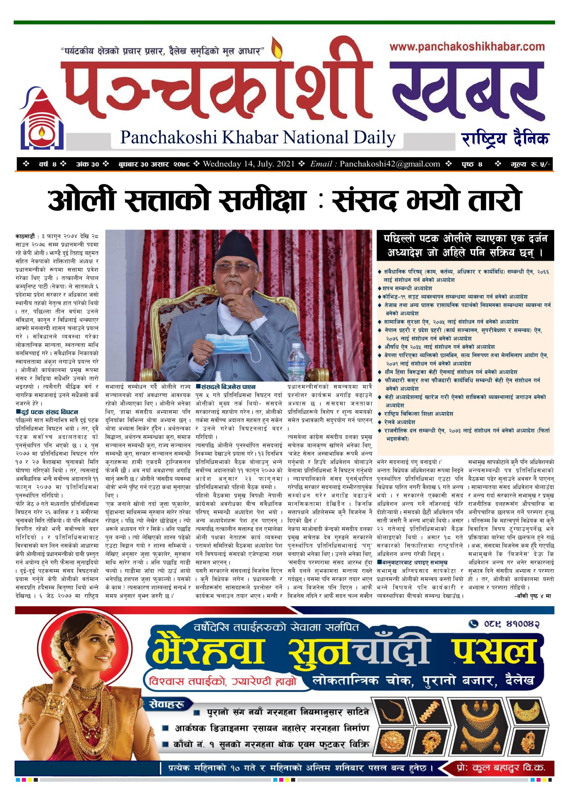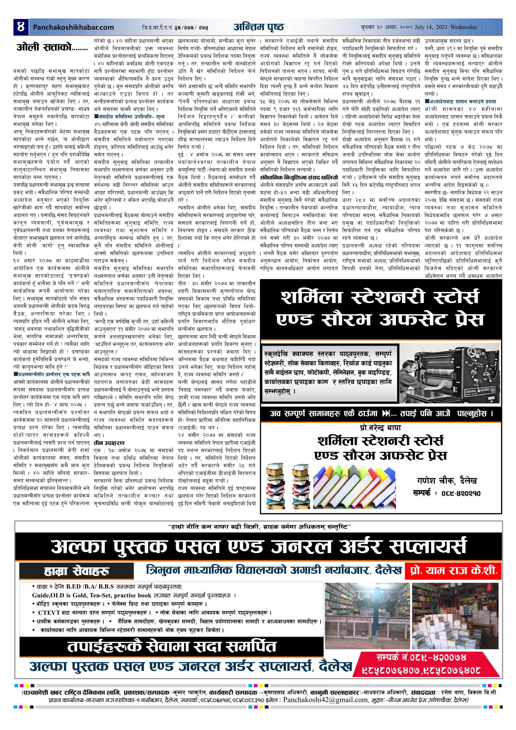 मिति २०७८ असार ३० गते प्रकाशित पंचकोशी खबर दैनिक पंचकाेशि संवाददाता । २०७८ असार ३०, बुधबार मा प्रकाशित