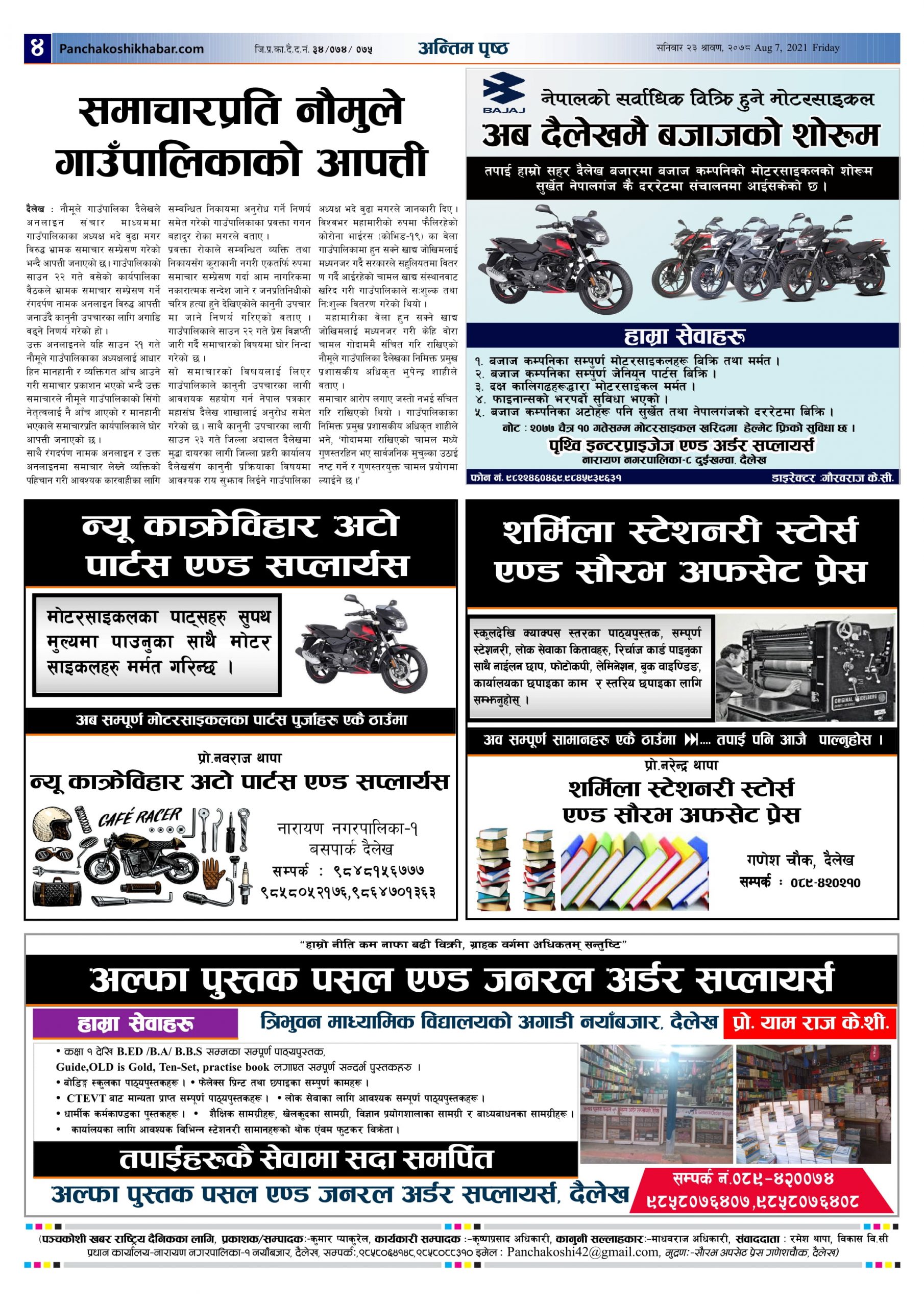 मिति २०७८ साउन २३ गते प्रकाशित पंचकोशी खबर दैनिक कृष्णप्रसाद अधिकारी । २०७८ श्रावण २३, शनिबार मा प्रकाशित