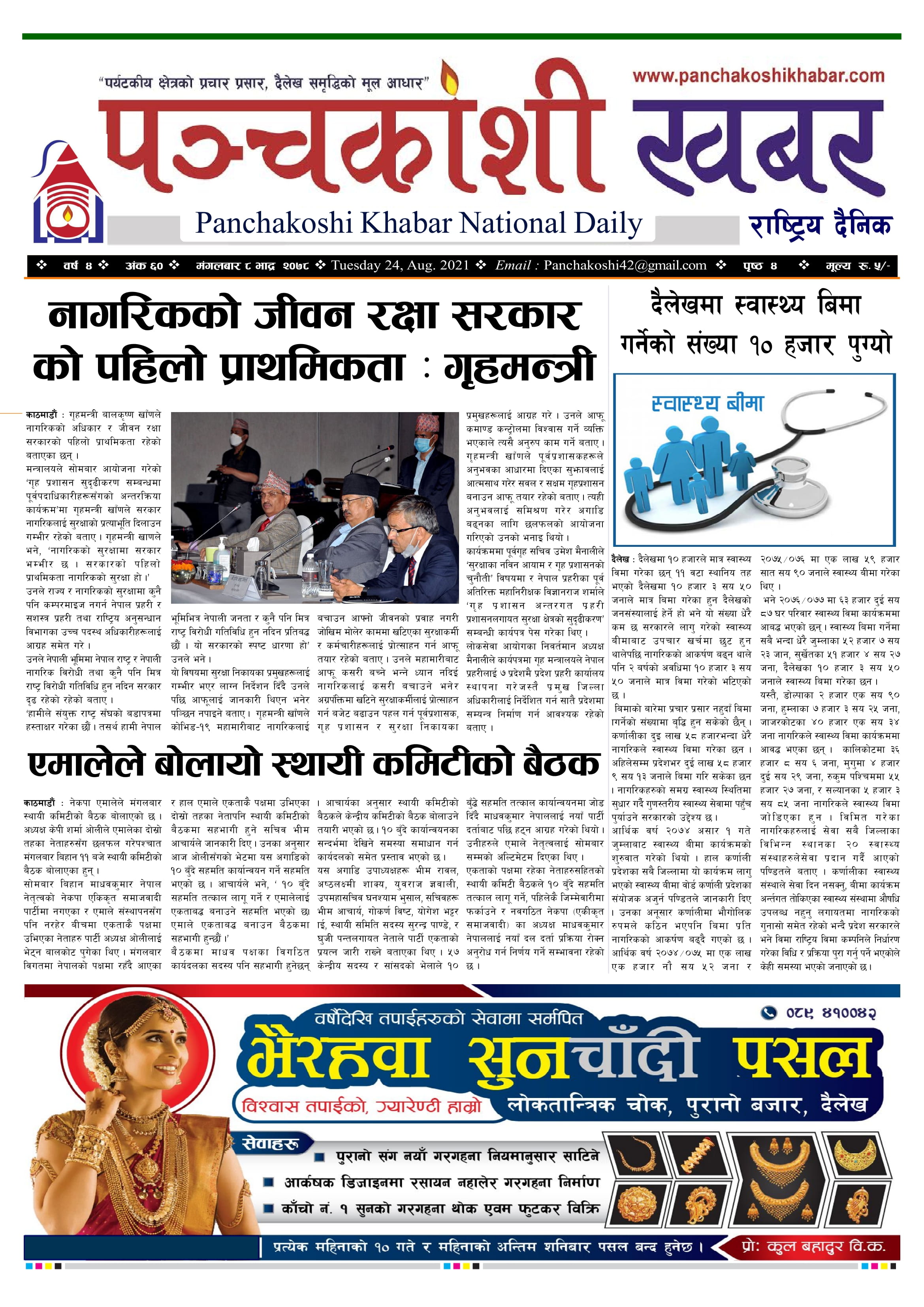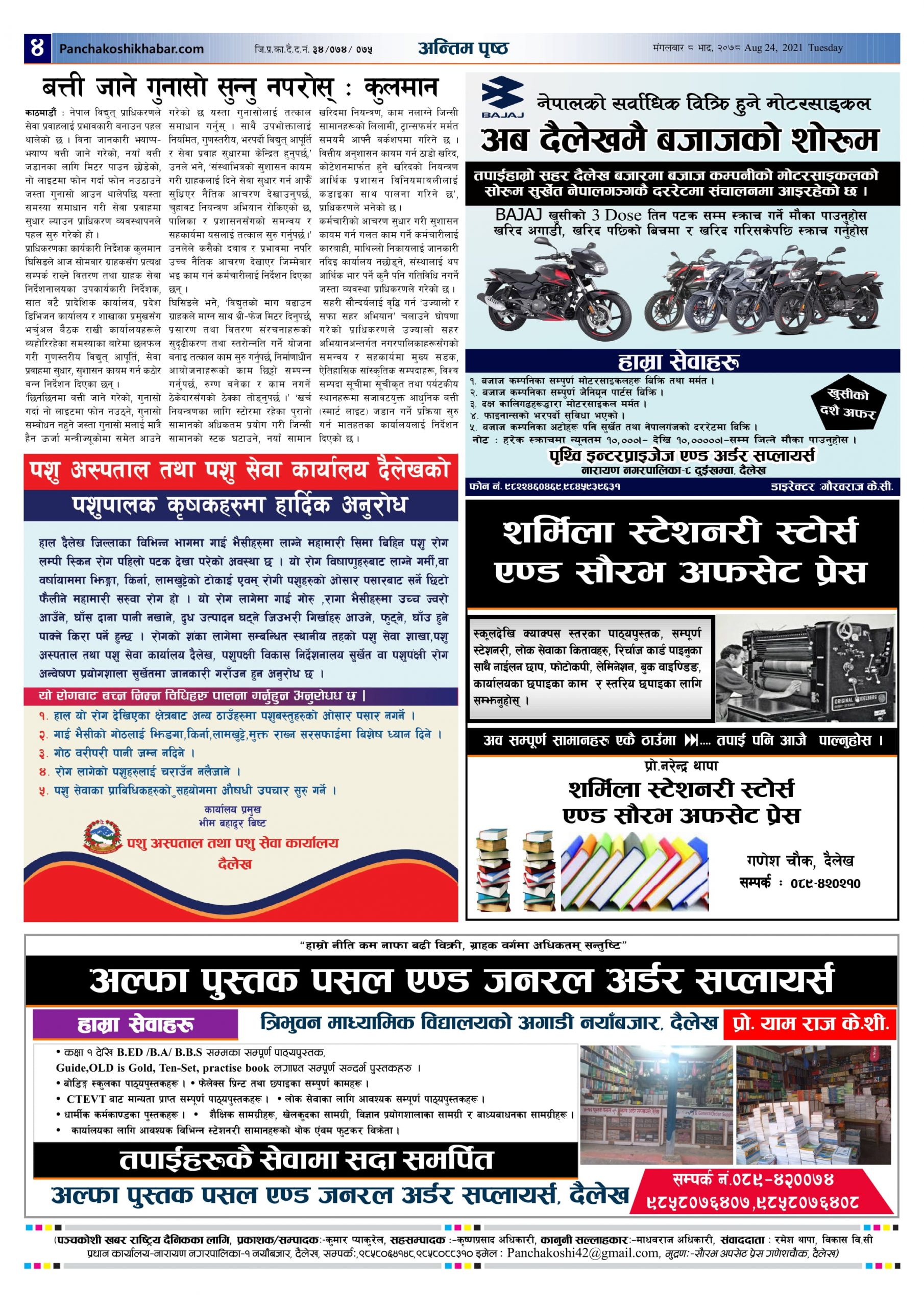 मिति २०७८ भाद्र ८ गते प्रकाशित पंचकोशी खबर दैनिक कृष्णप्रसाद अधिकारी । २०७८ भाद्र ८, मंगलवार मा प्रकाशित