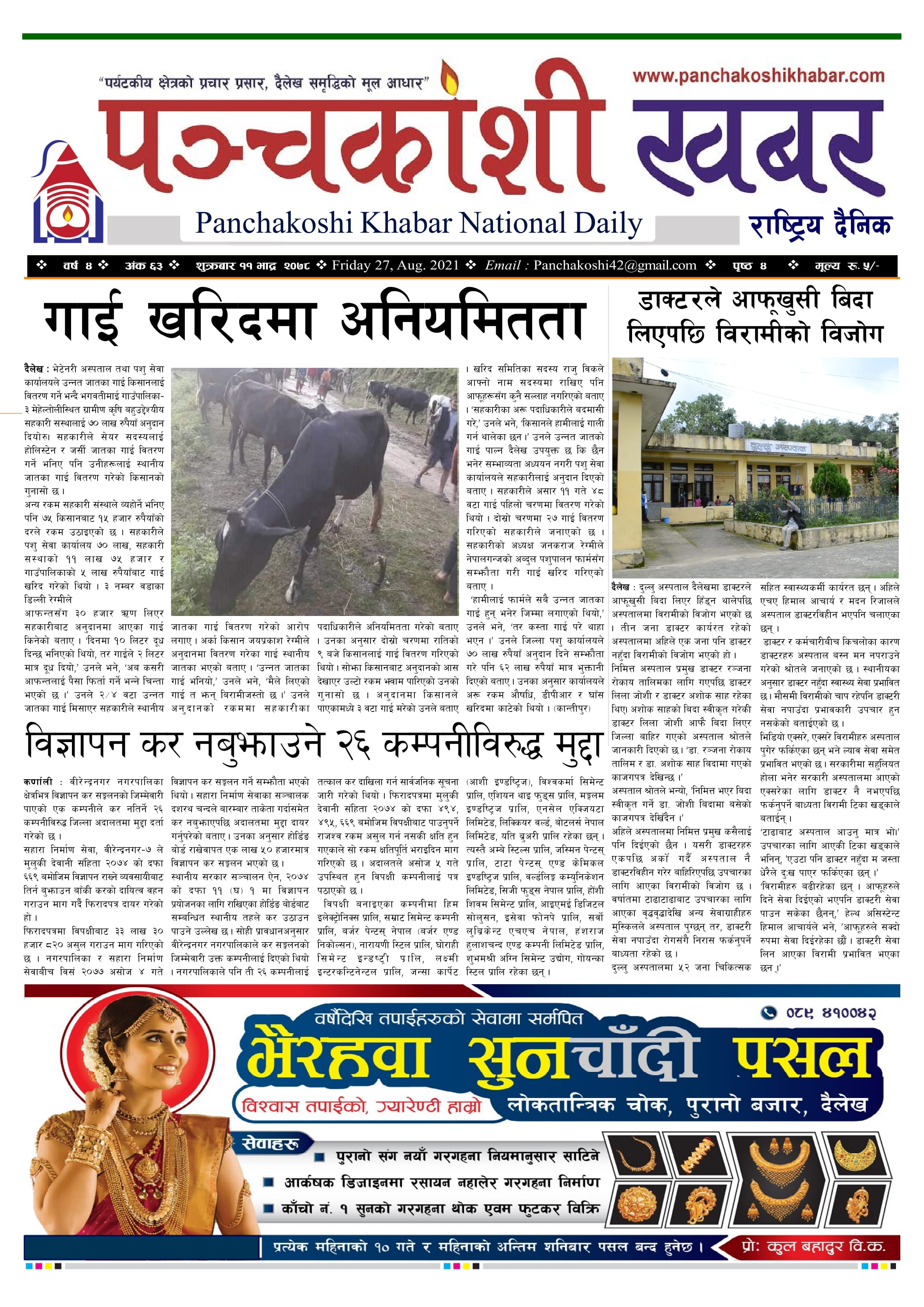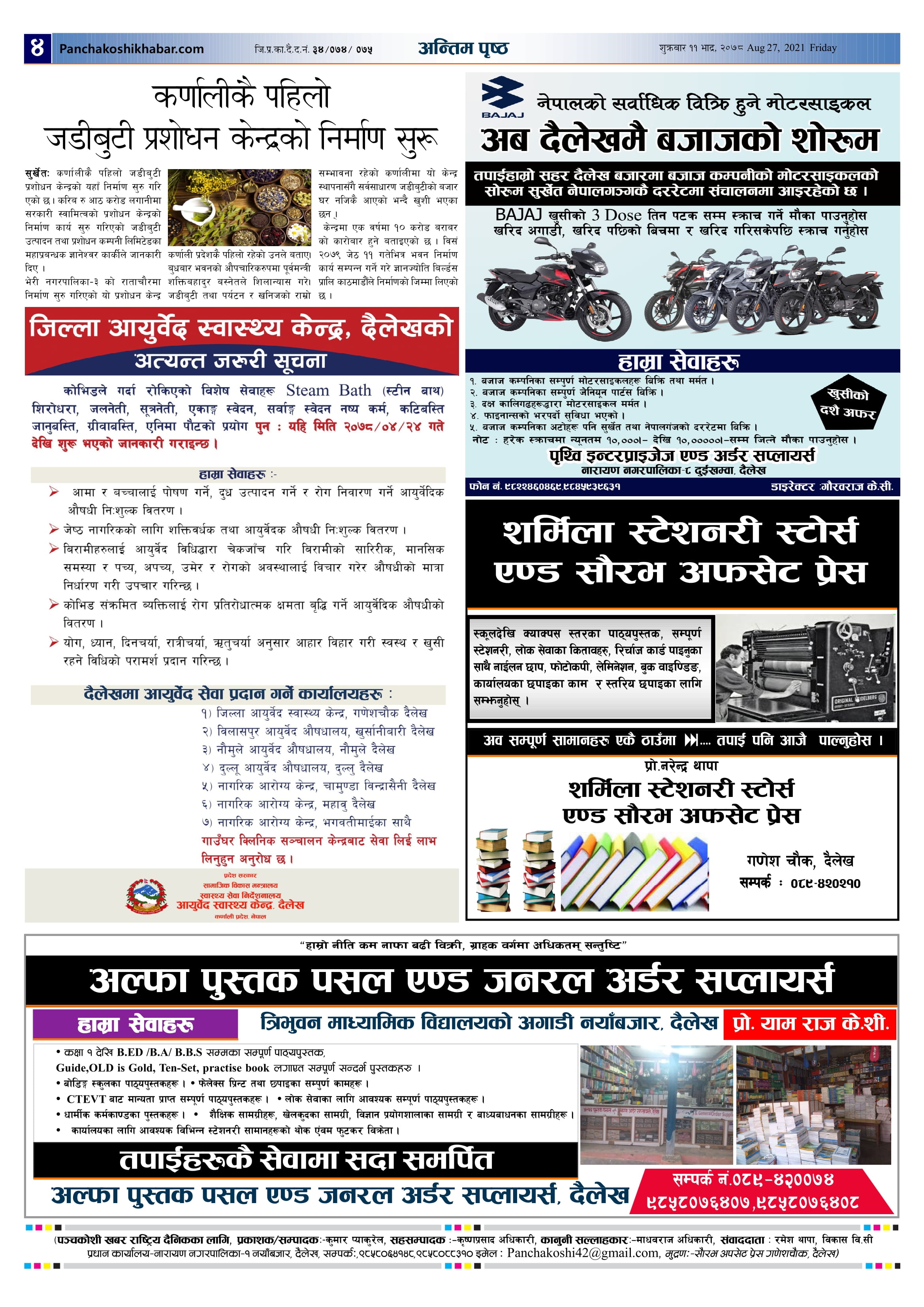मिति २०७८ साल भाद्र ११ गते प्रकाशित पंचकोशी खबर दैनिक कृष्णप्रसाद अधिकारी । २०७८ भाद्र ११, शुक्रबार मा प्रकाशित