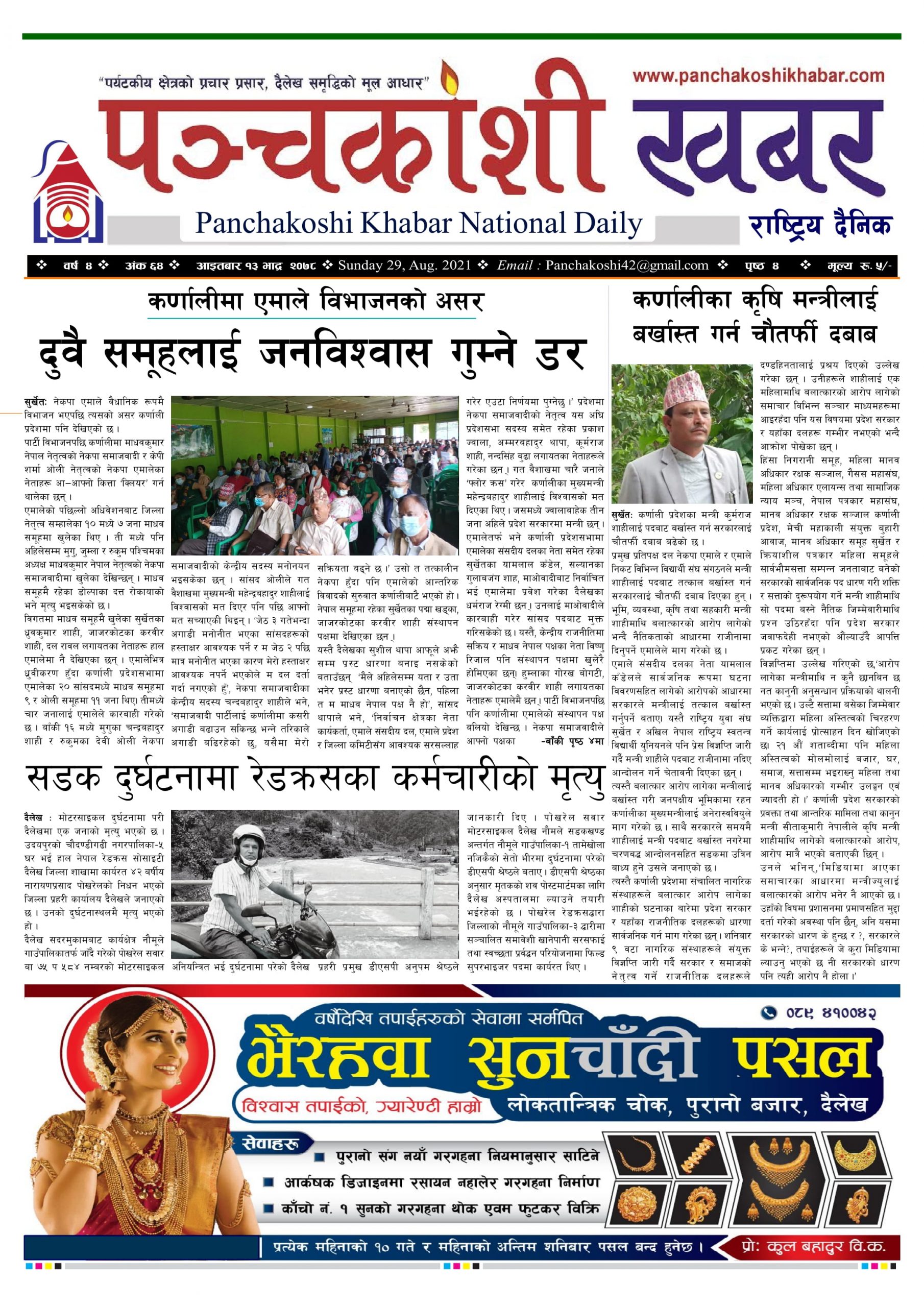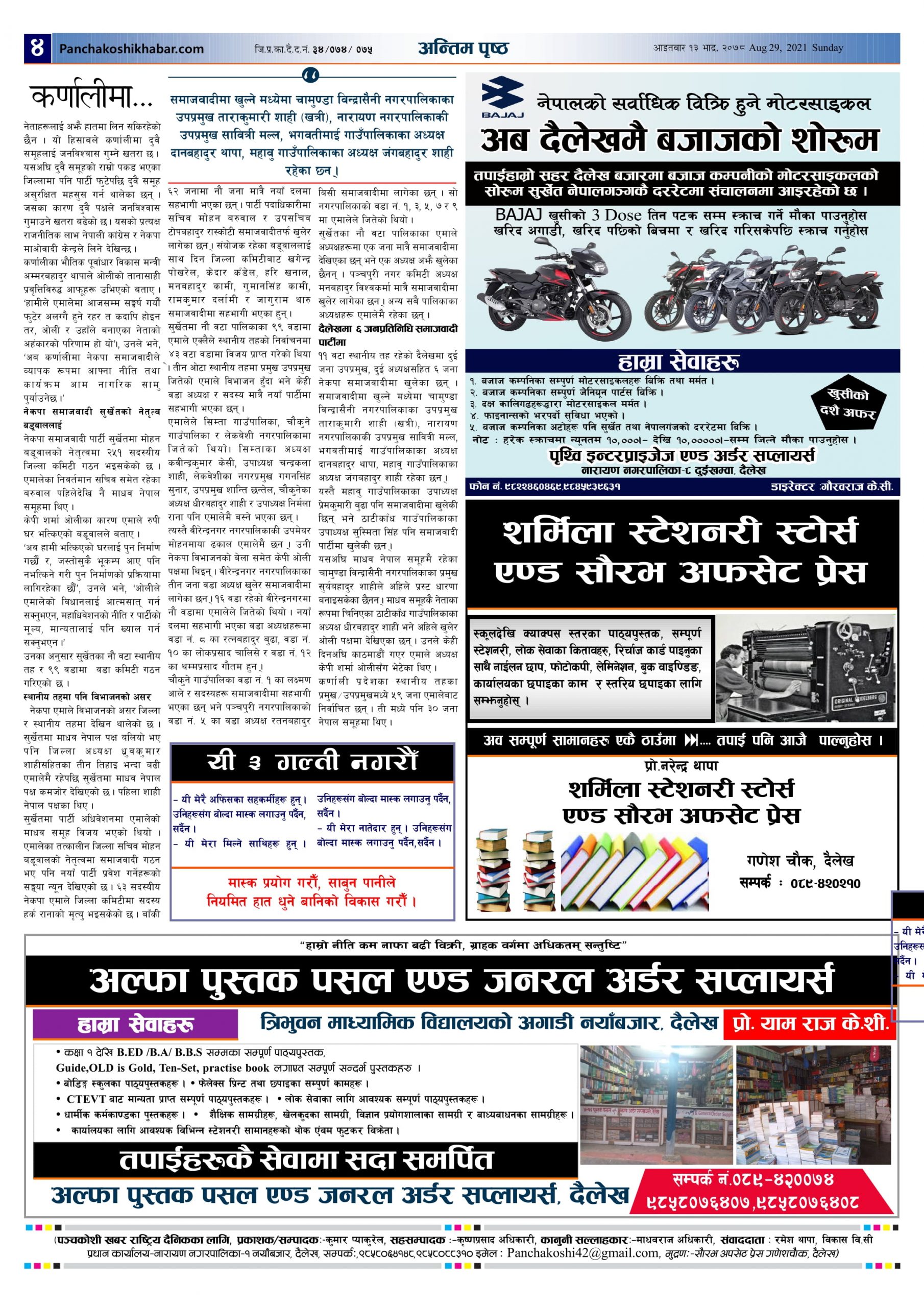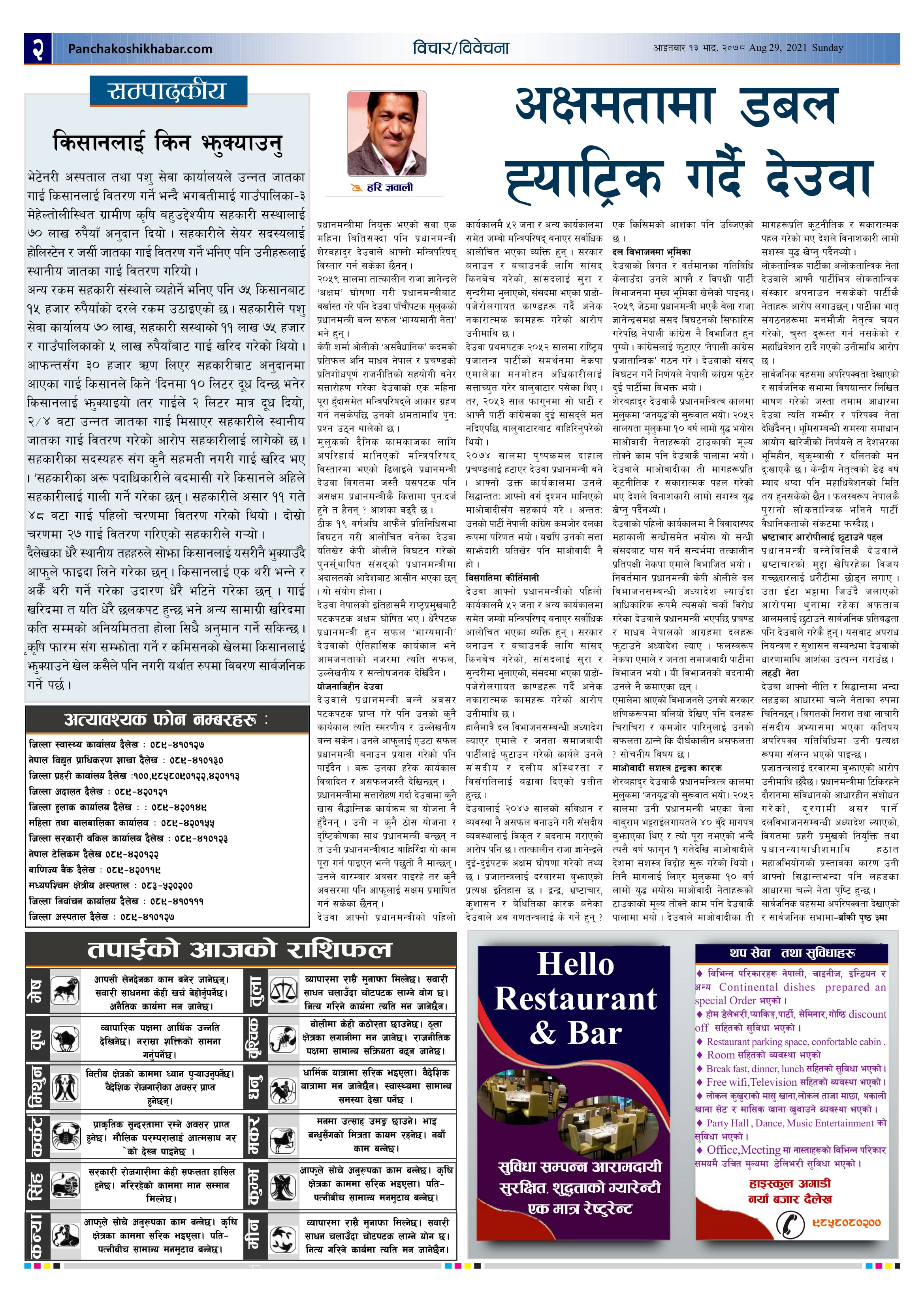 मिति २०७८ भाद्र १३ गते प्रकाशित पंचकोशी खबर दैनिक कृष्णप्रसाद अधिकारी । २०७८ भाद्र १३, आईतवार मा प्रकाशित