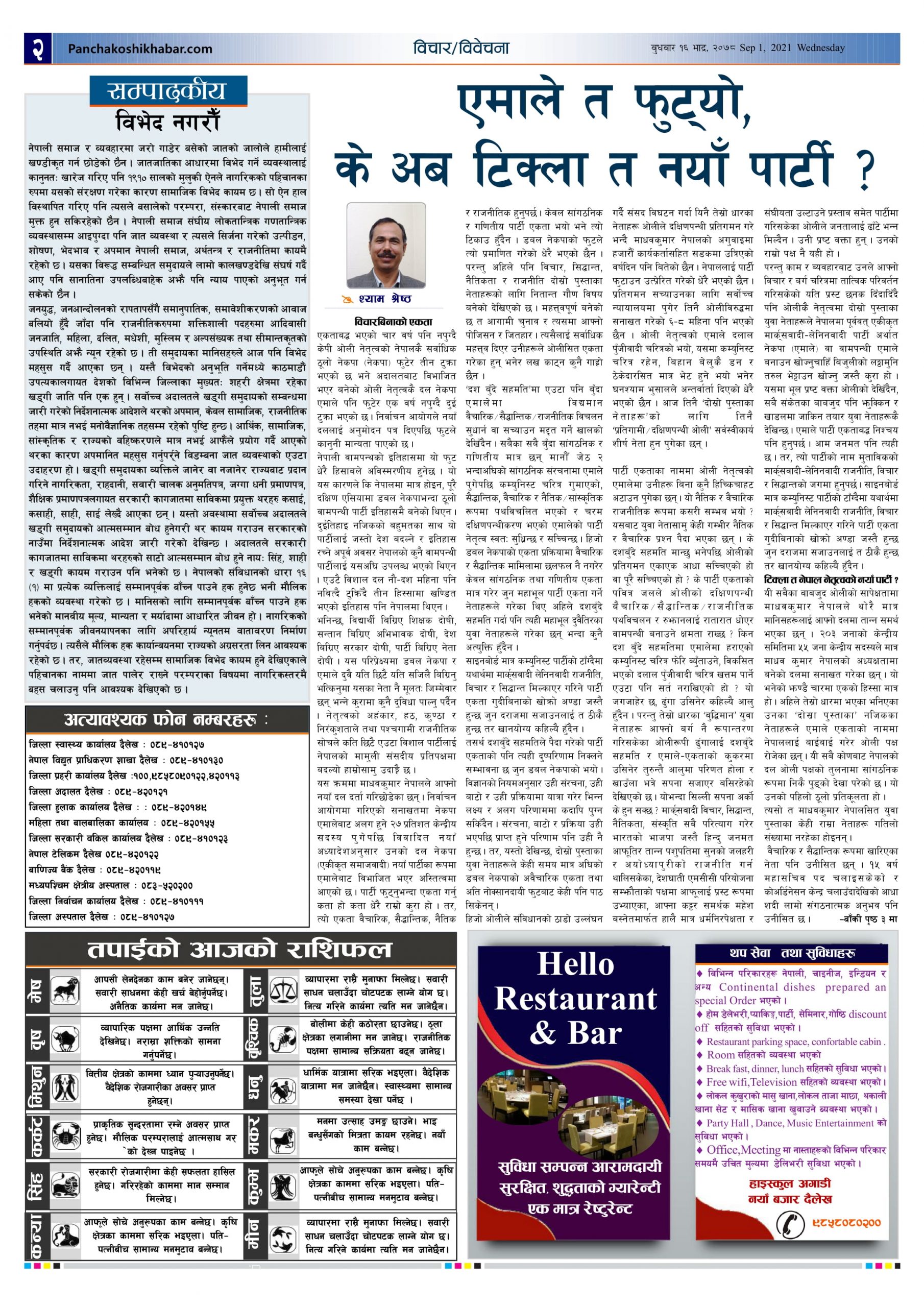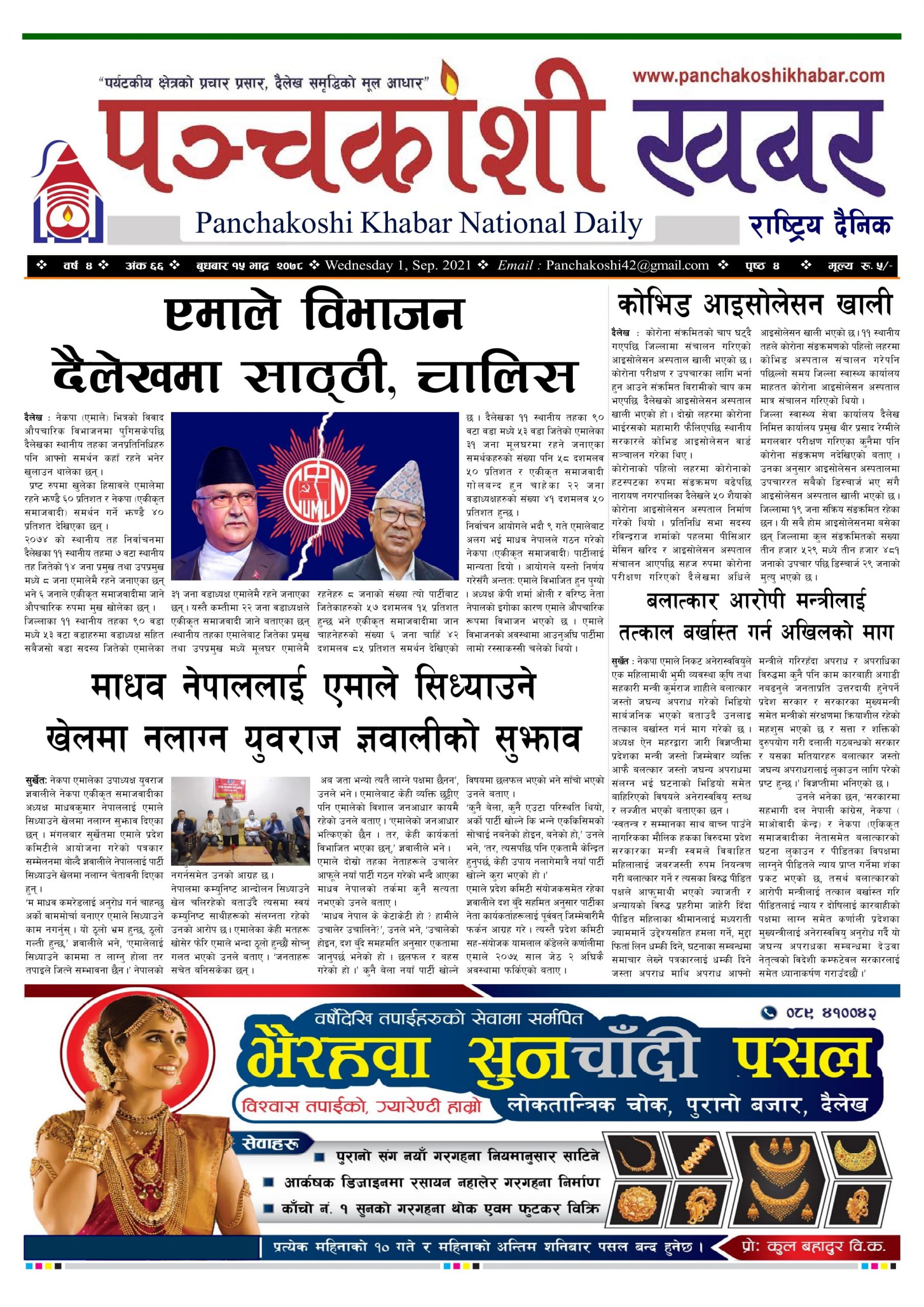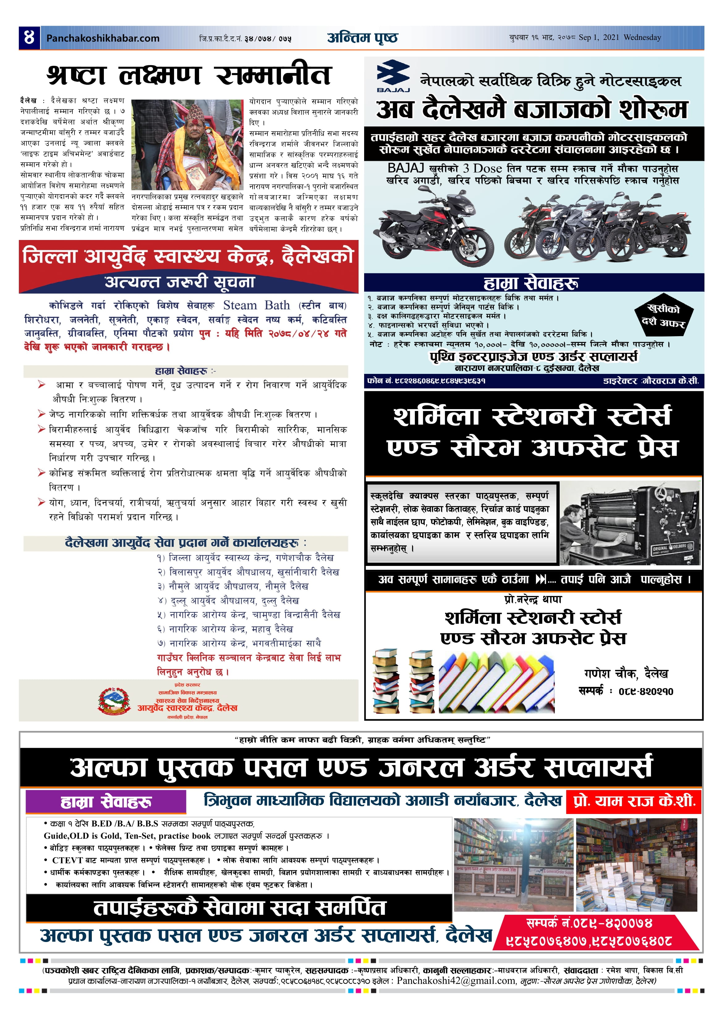 मिति २०७८ भाद्र १६ गते प्रकाशित पंचकोशी खबर दैनिक कृष्णप्रसाद अधिकारी । २०७८ भाद्र १६, बुधबार मा प्रकाशित