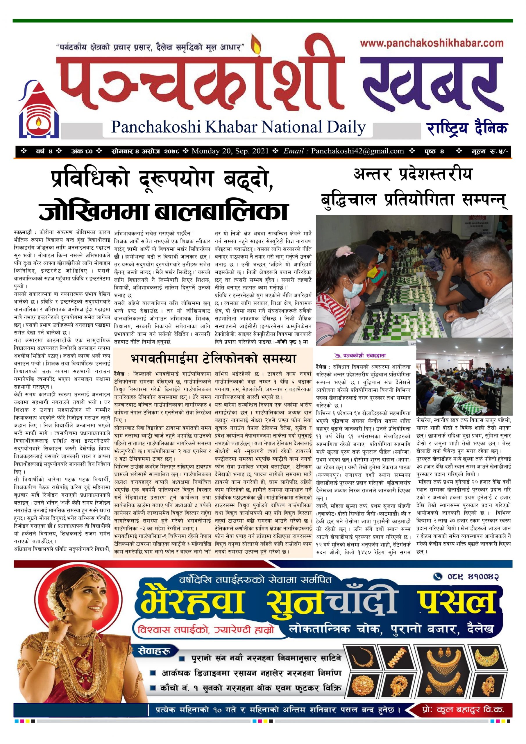 मिति २०७८ असोज ४ गते प्रकाशित पंचकोशी खबर दैनिक कृष्णप्रसाद अधिकारी । २०७८ आश्विन ९, शनिबार मा प्रकाशित