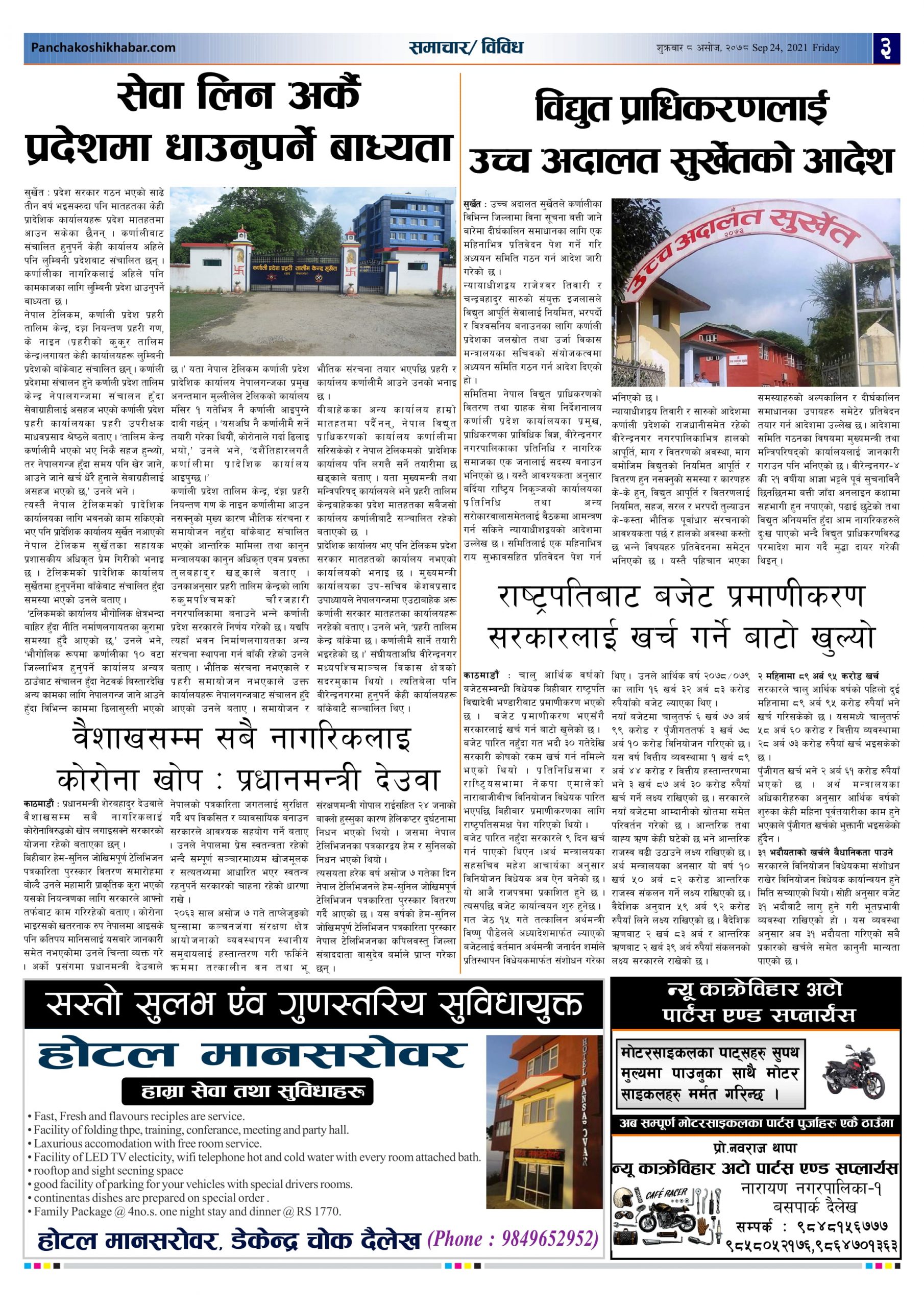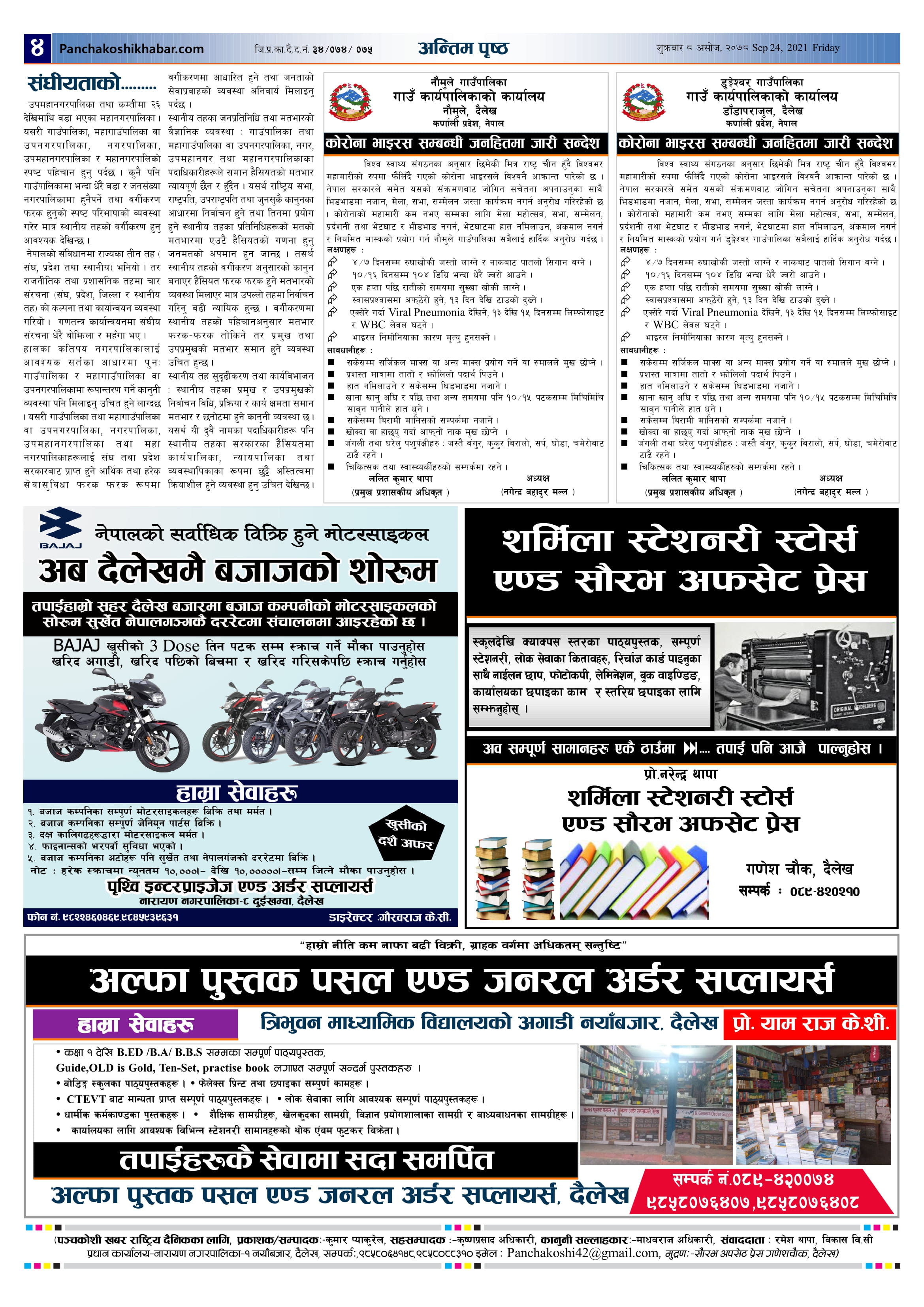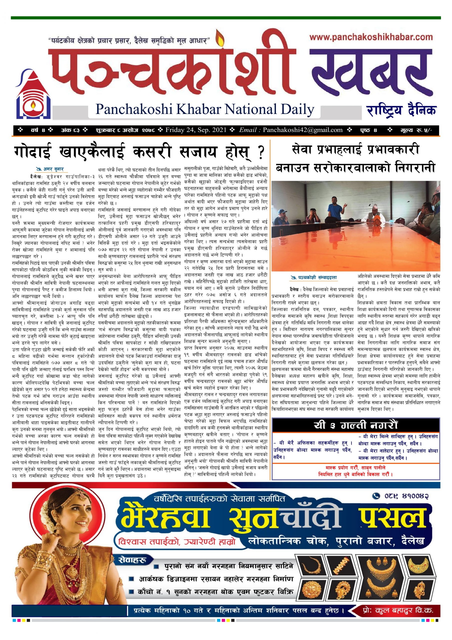 मिति २०७८ असोज ८ गते प्रकाशित पंचकोशी खबर दैनिक पंचकाेशी संवाददाता । २०७८ आश्विन ९, शनिबार मा प्रकाशित
