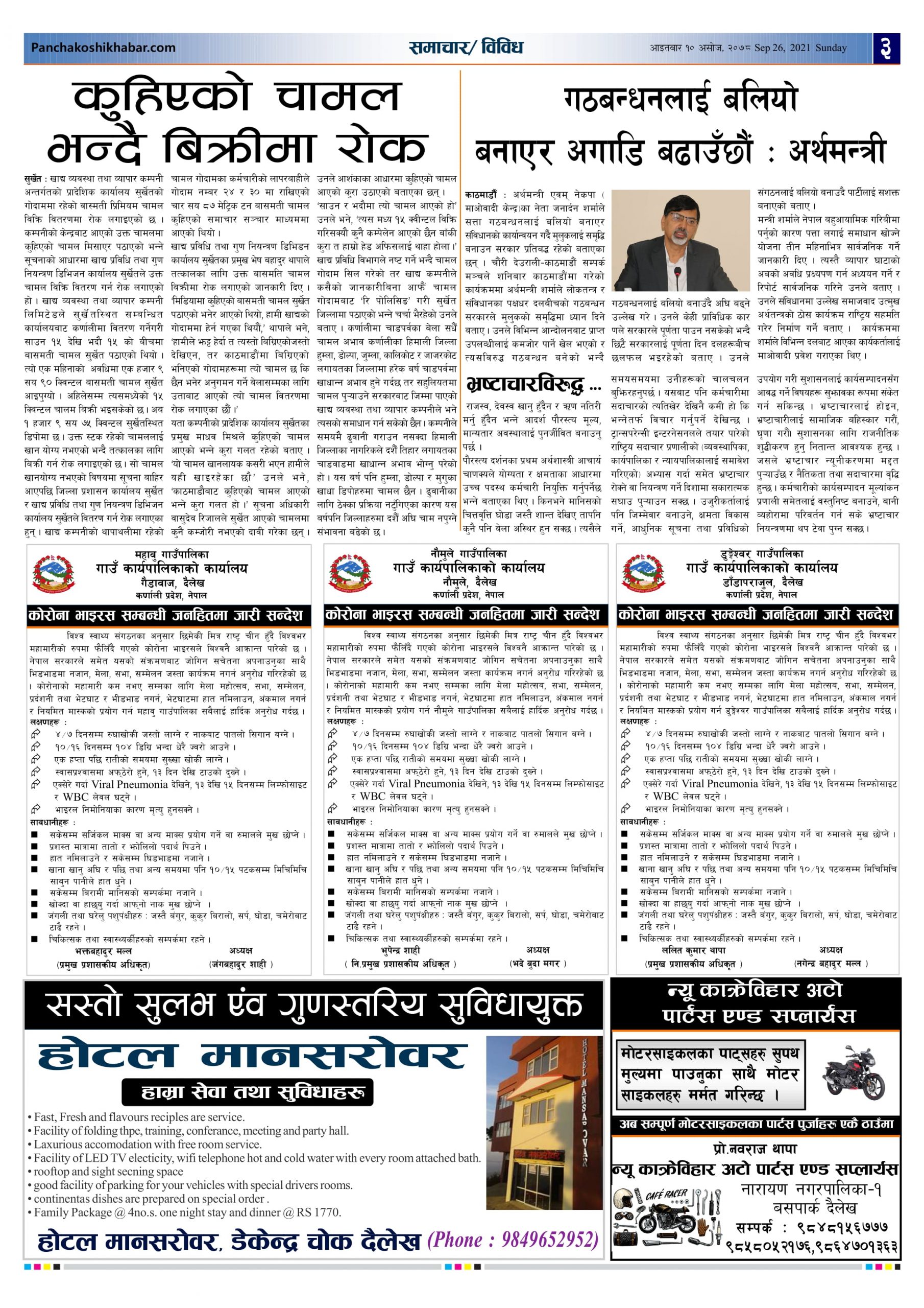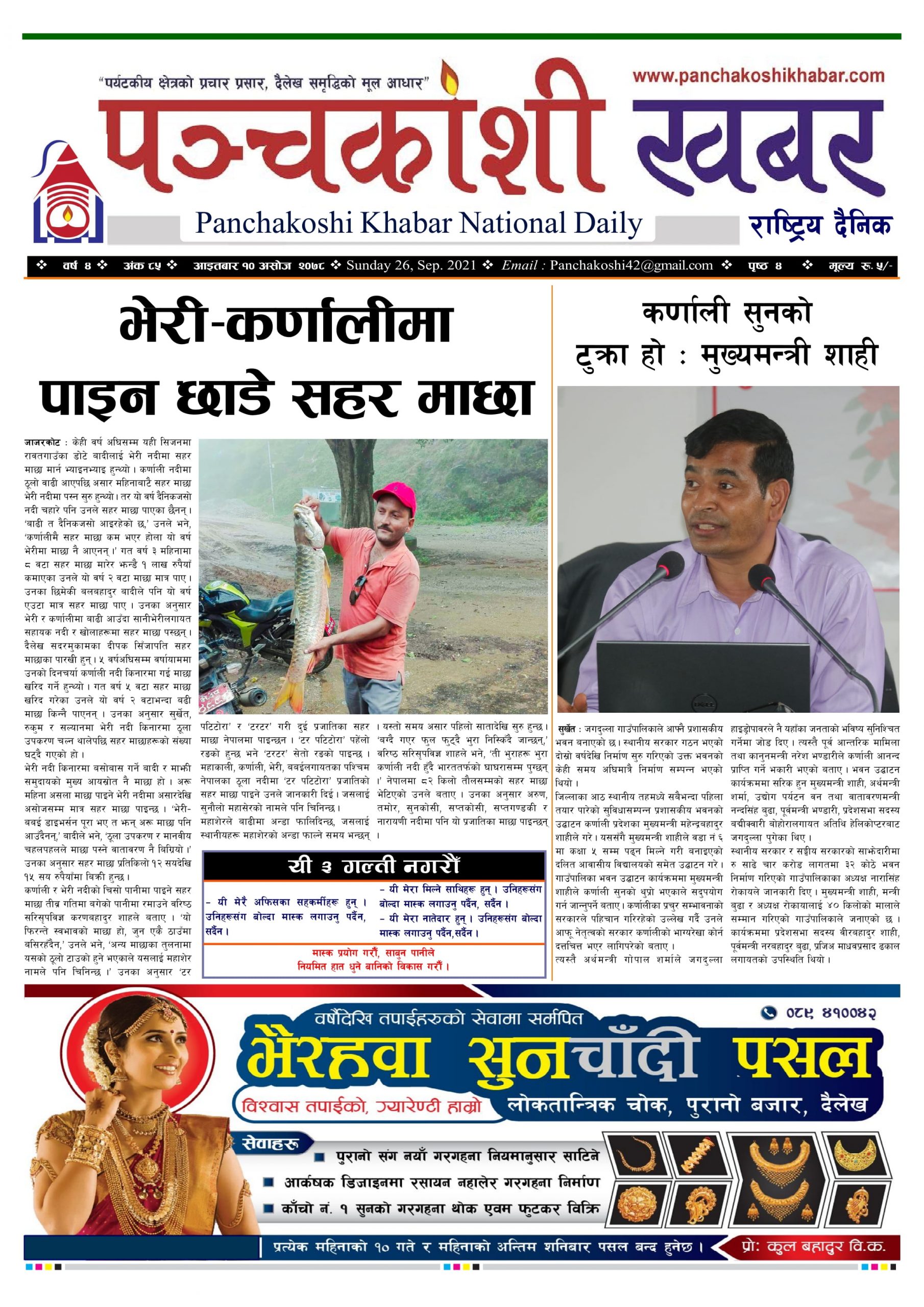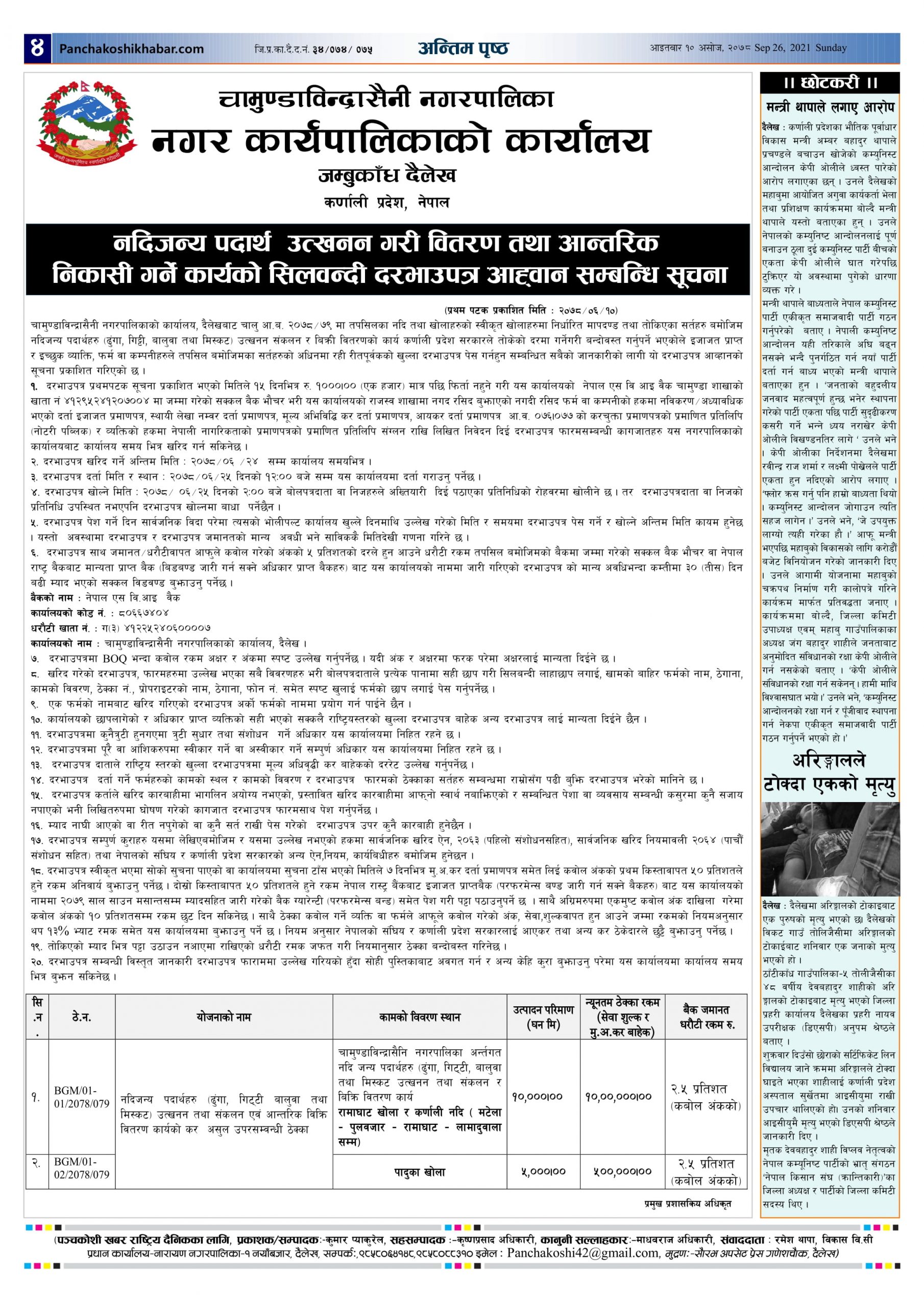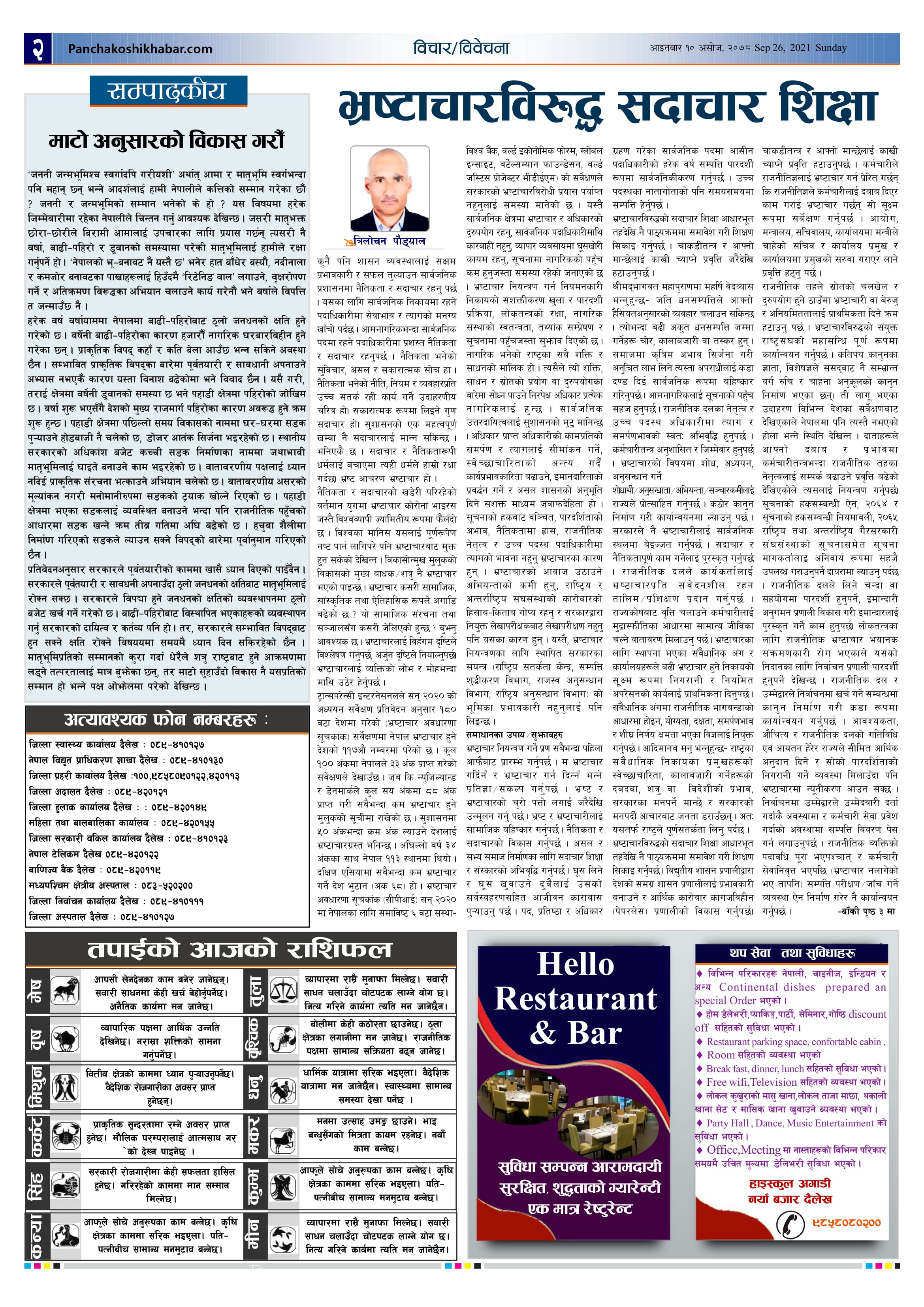 मिति २०७८ असोज १० गते प्रकाशित पंचकोशी खबर दैनिक कृष्णप्रसाद अधिकारी । २०७८ आश्विन १०, आईतवार मा प्रकाशित