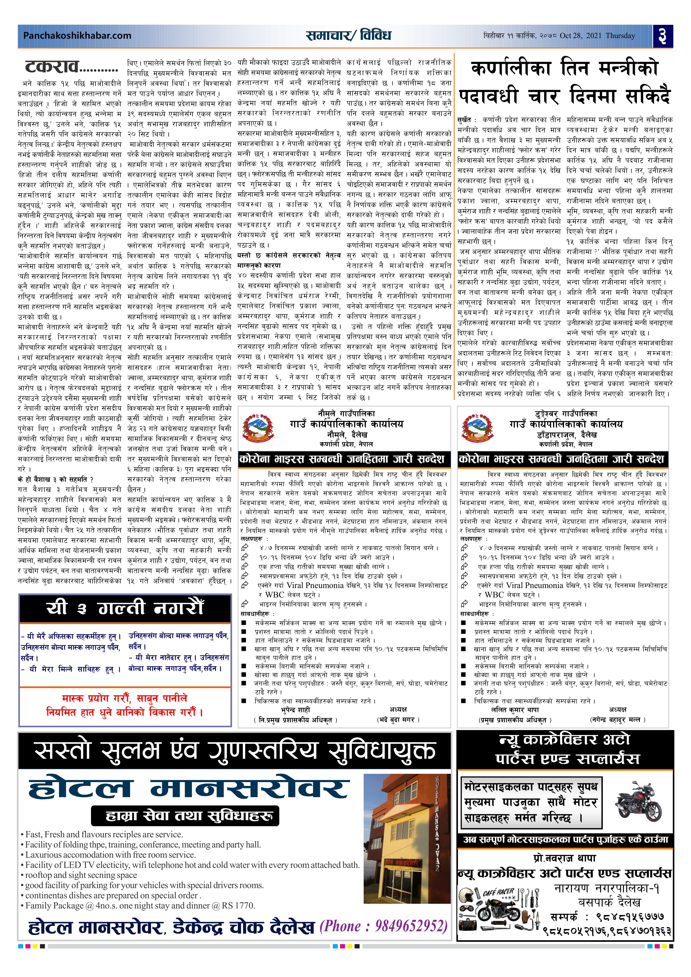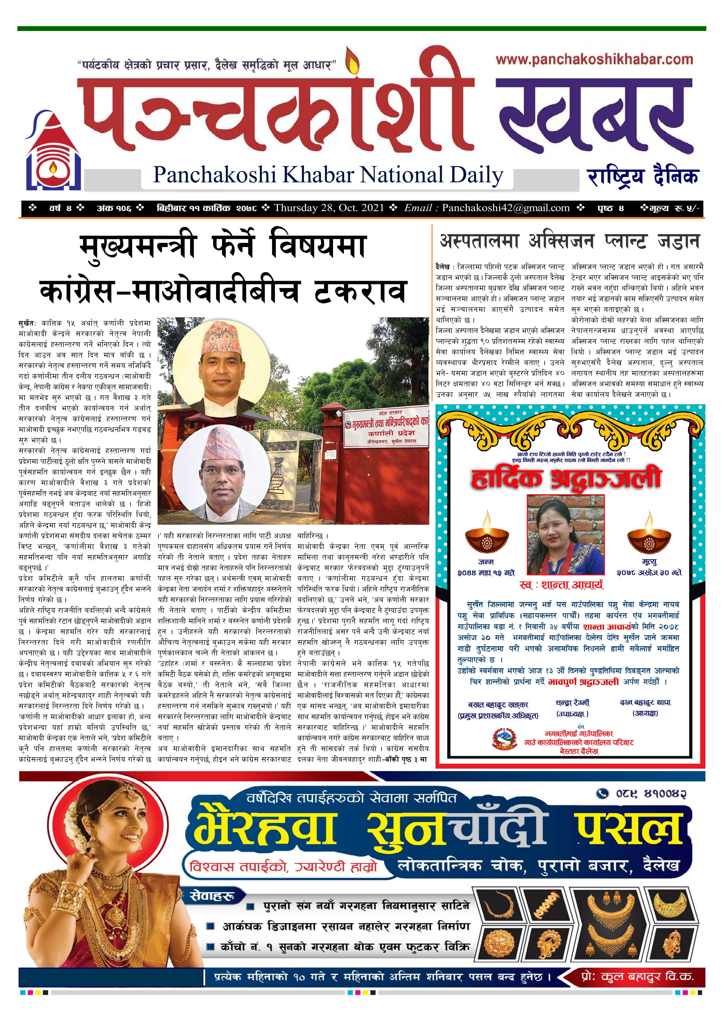 मिति २०७८ कार्तिक ११ गते प्रकाशित पंचकोशी खबर दैनिक पंचकोशी संवाददाता । २०७८ कार्तिक १२, शुक्रबार मा प्रकाशित