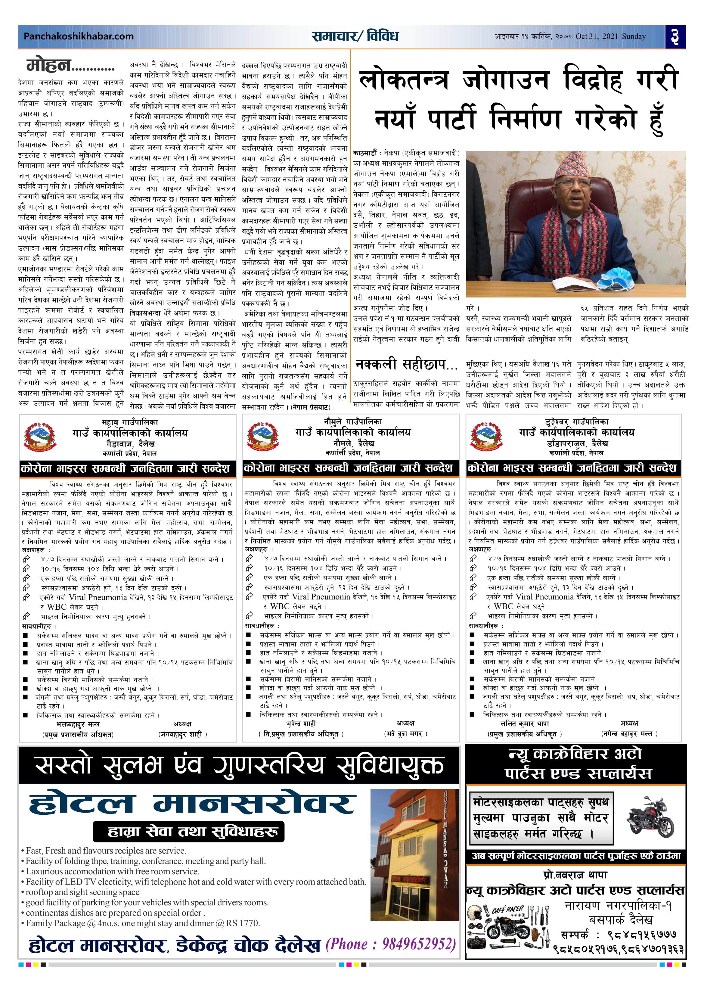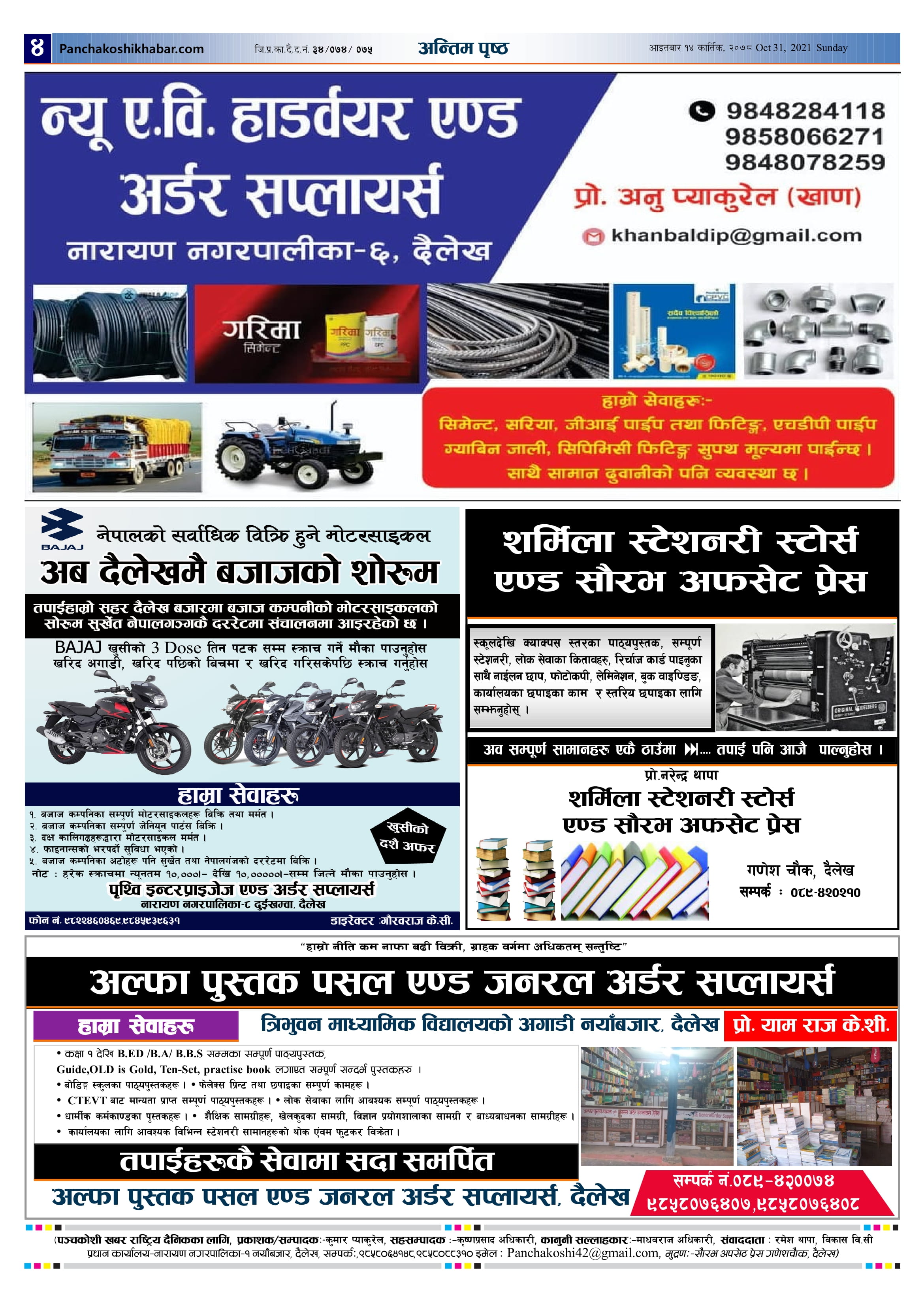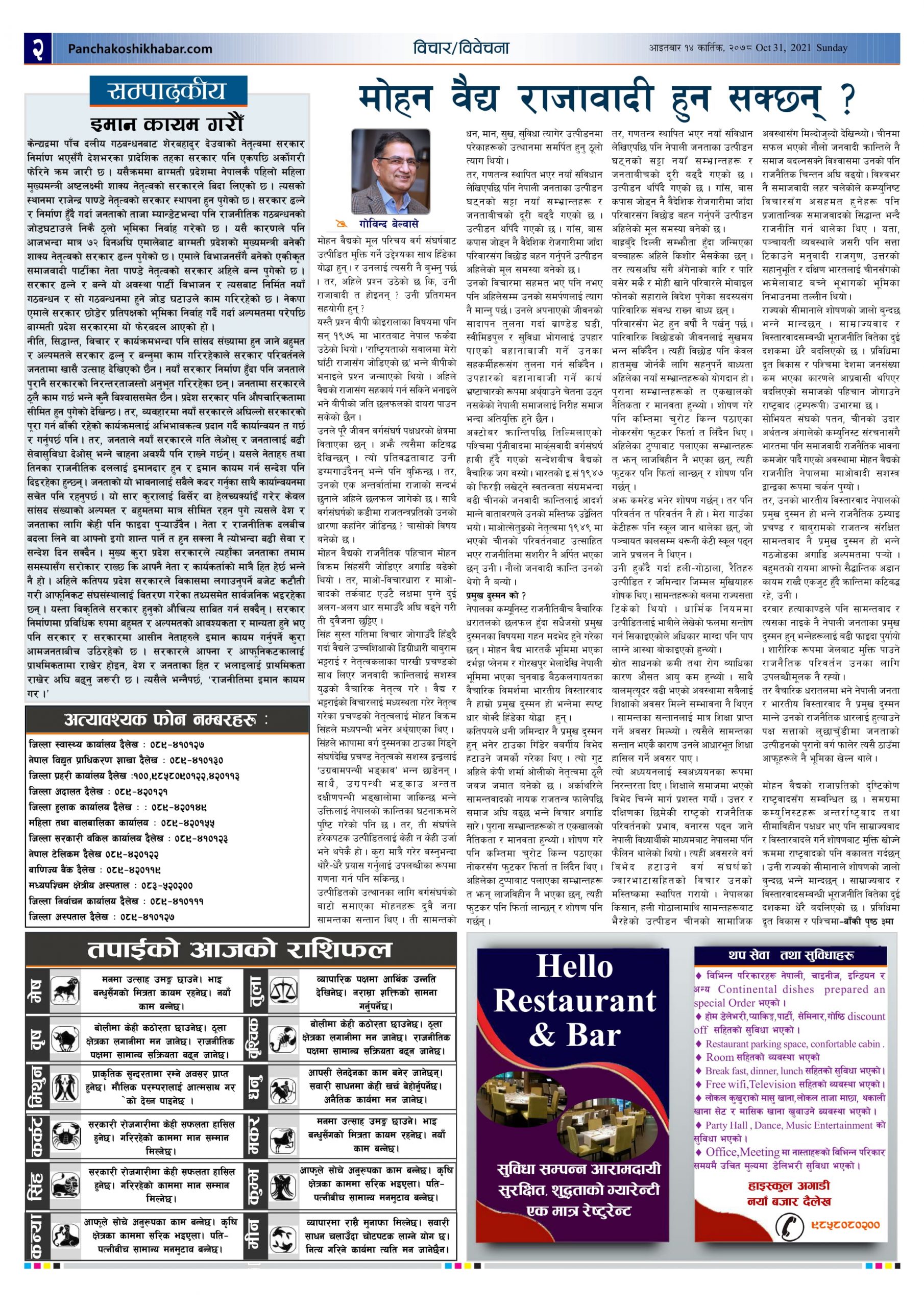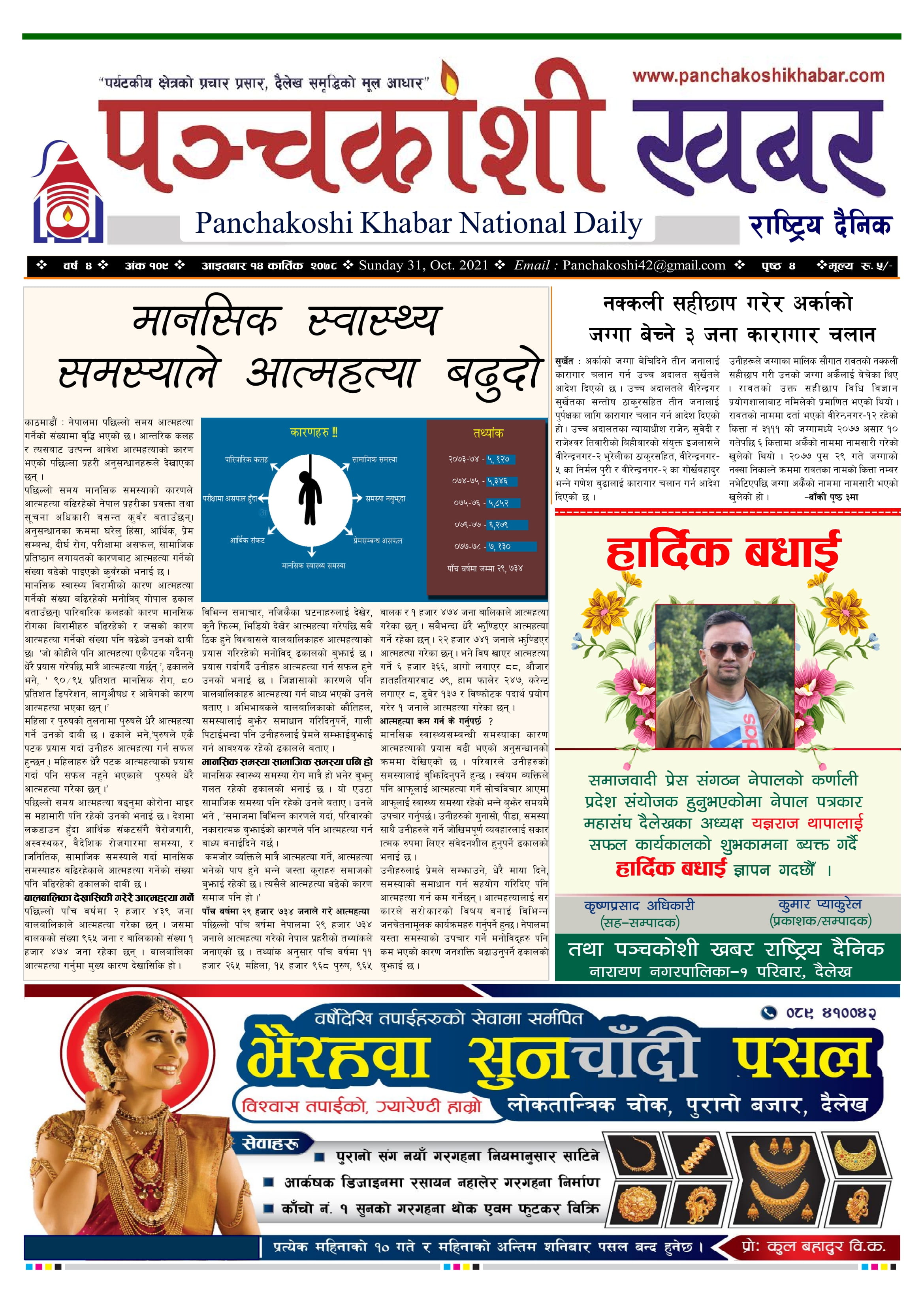 मिति २०७८ कार्तिक १४ गते प्रकाशित पंचकोशी खबर दैनिक पंचकोशी संवाददाता । २०७८ कार्तिक १५, सोमबार मा प्रकाशित