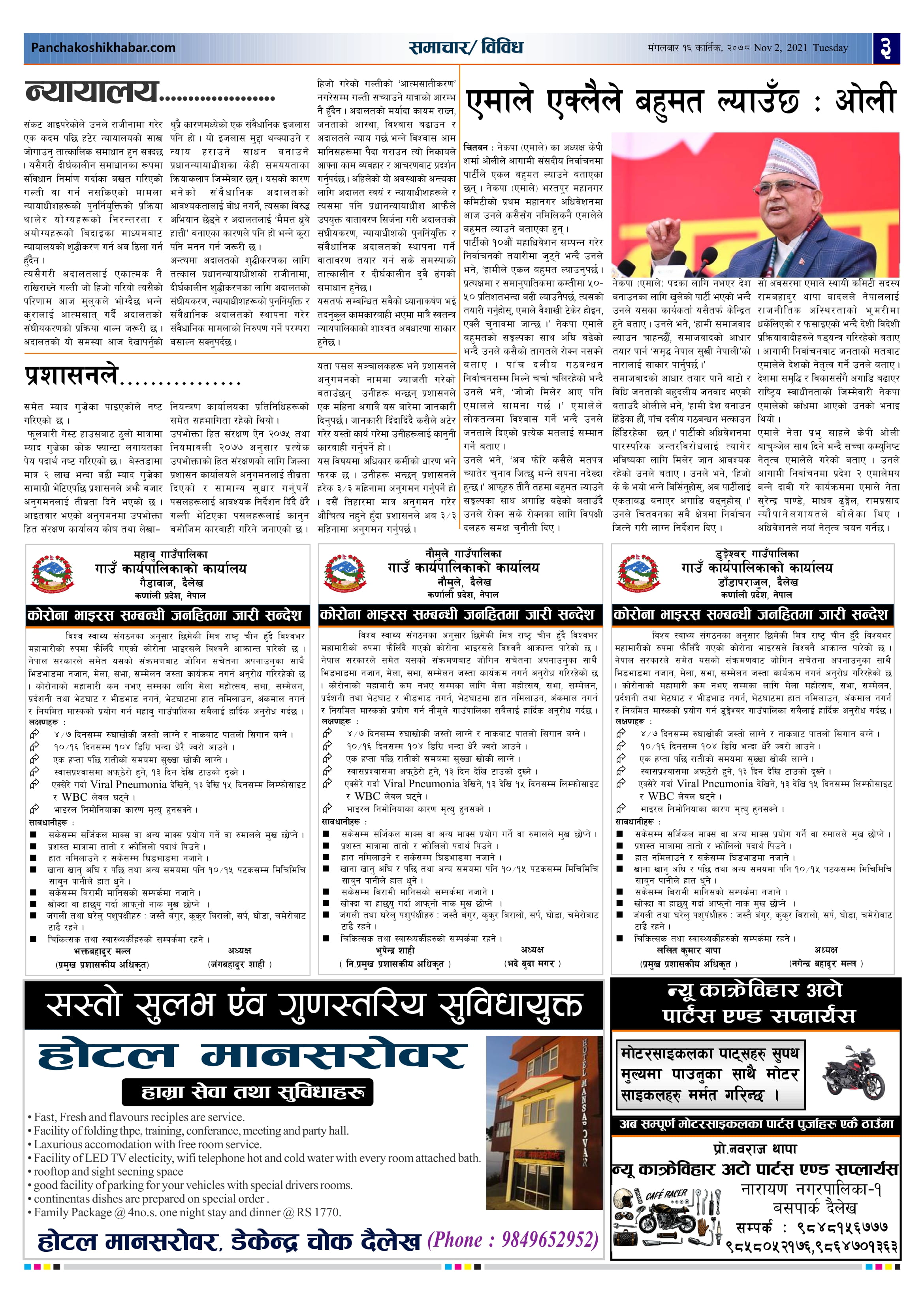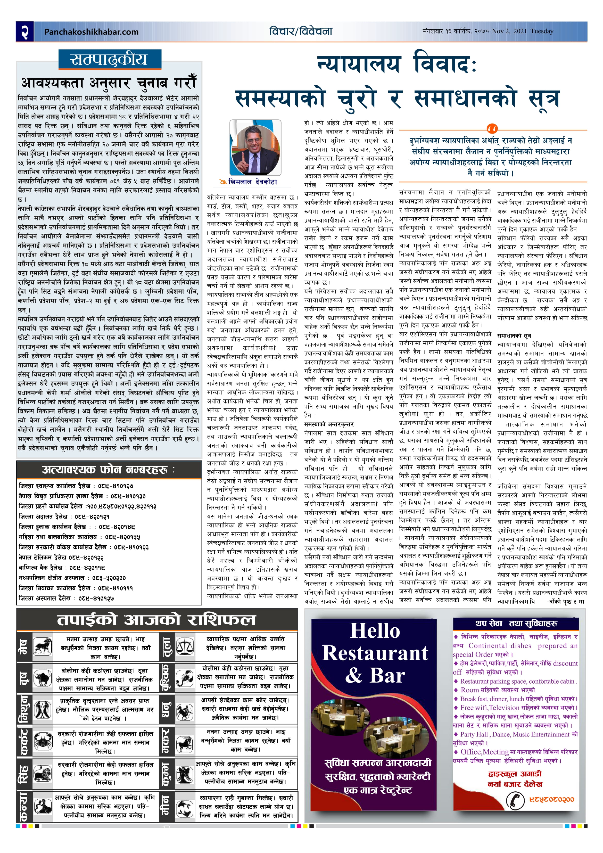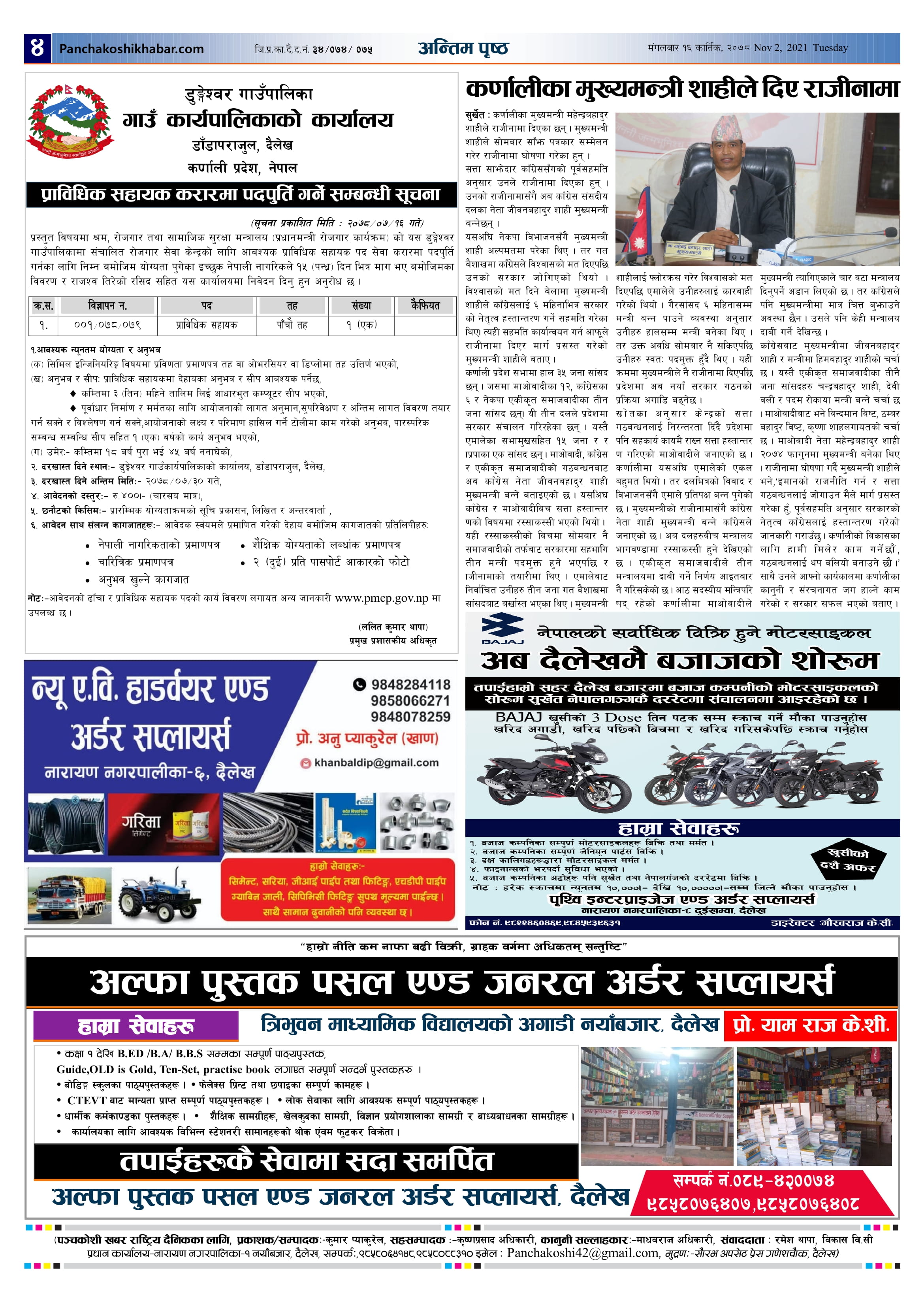 मिति २०७८ कार्तिक १६ गते प्रकाशित पंचकोशी खबर दैनिक पंचकोशी संवाददाता । २०७८ कार्तिक १६, मंगलवार मा प्रकाशित