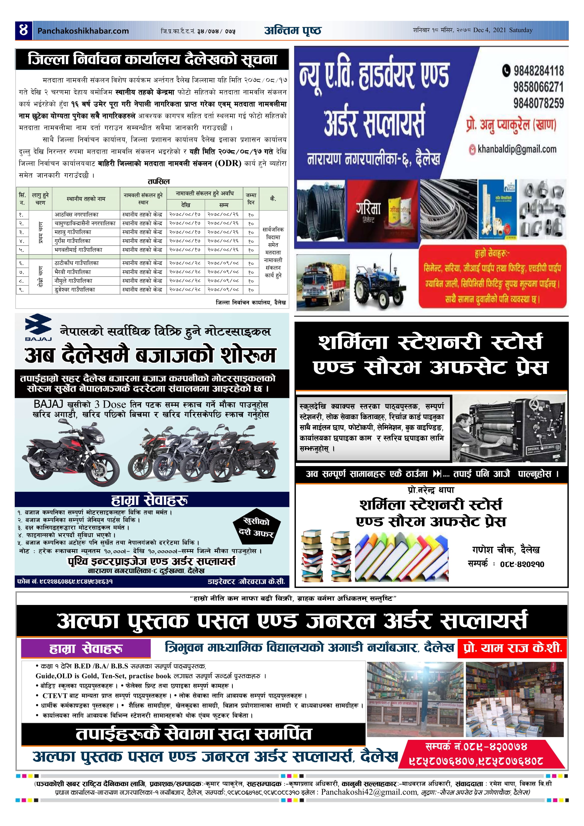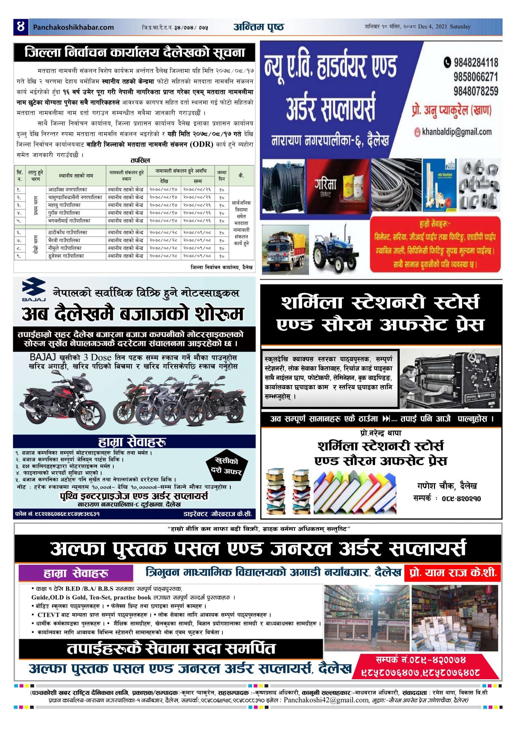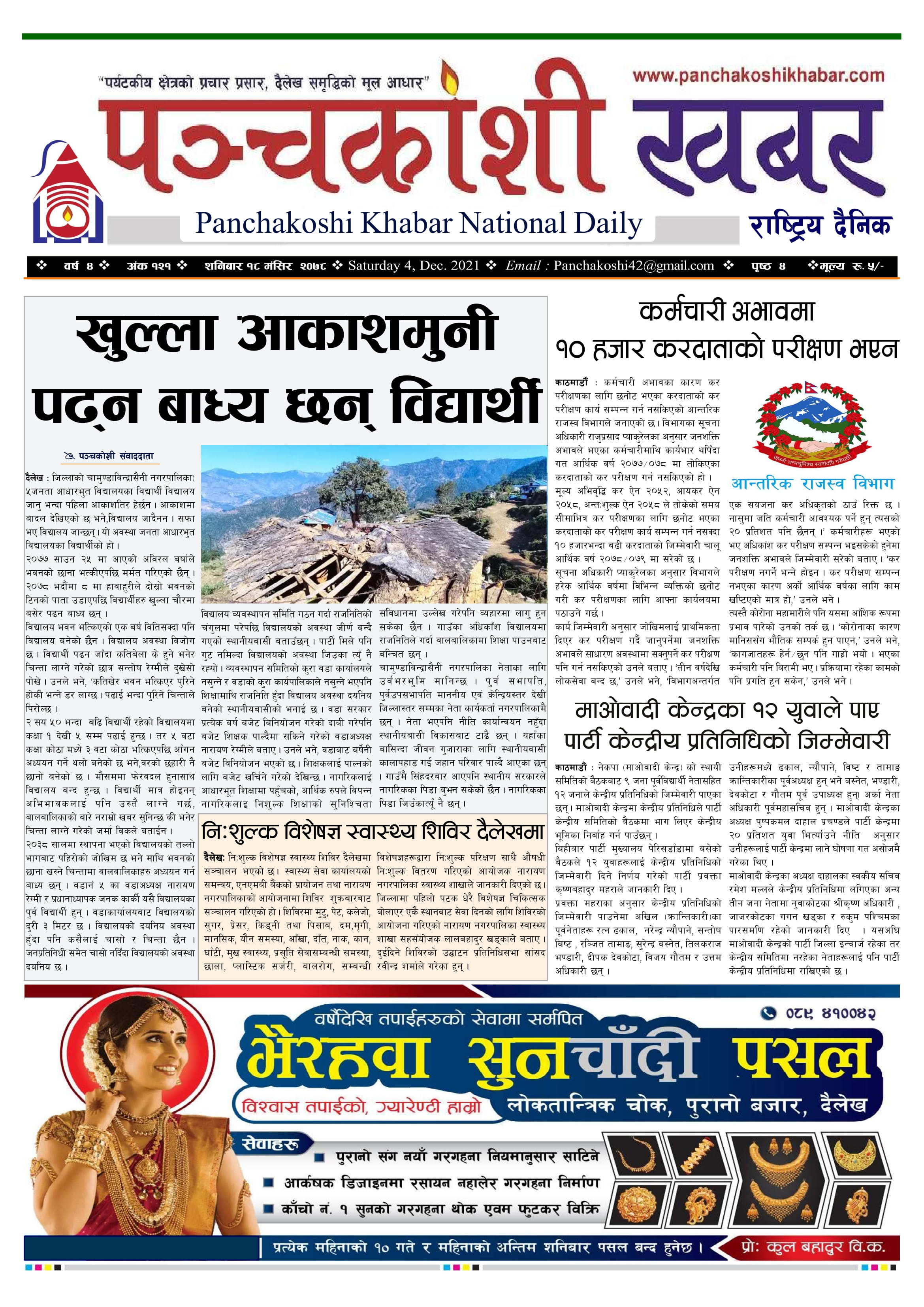 मिति २०७८ संसिर १८ गते प्रकाशित पंचकाेशी खबर दैनिक पंचकाेशी संवाददाता । २०७८ मंसिर १८, शनिबार मा प्रकाशित